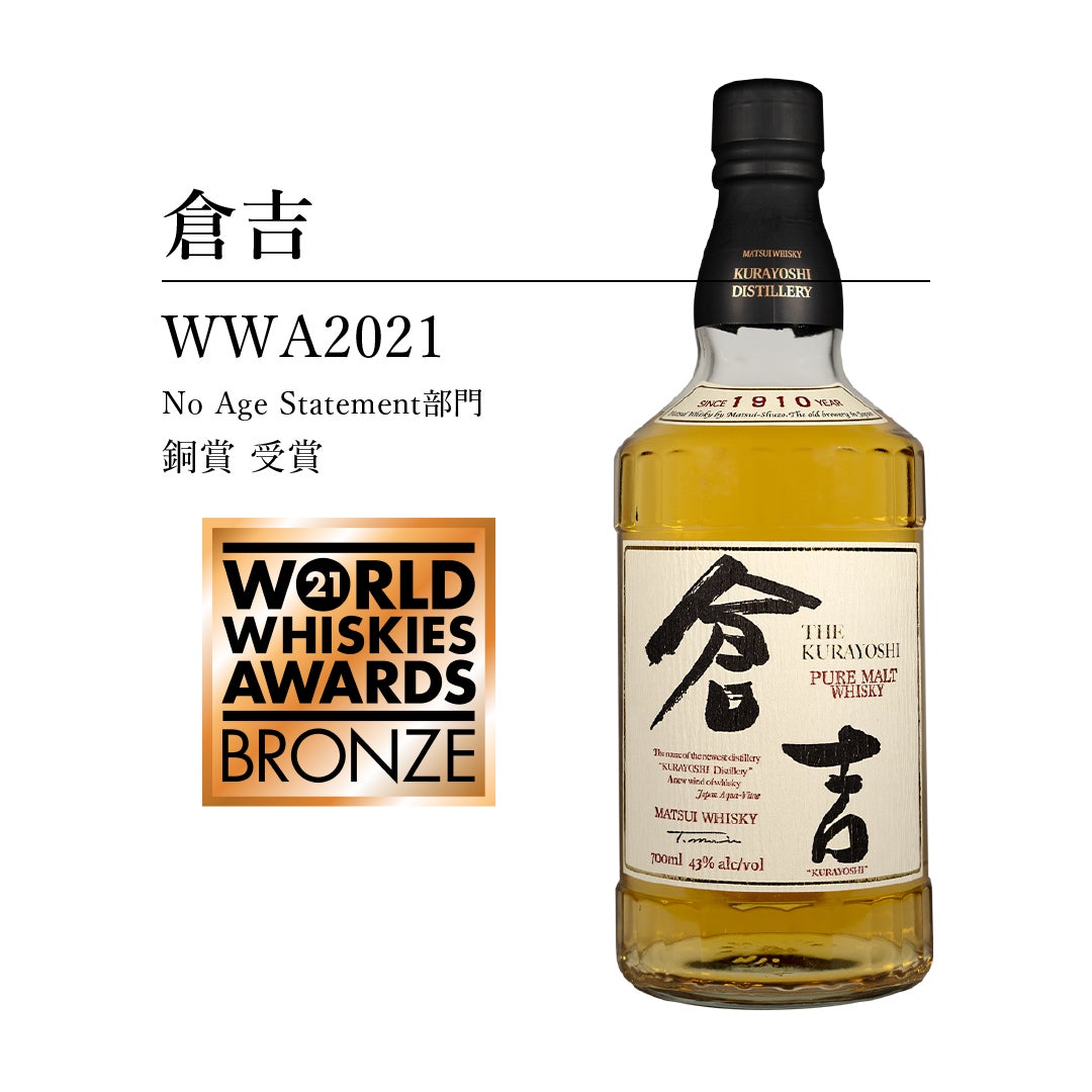 松井酒造合名会社 (以下、倉吉蒸溜所 所在地:鳥取県倉吉市)は、世界的に権威のあるウイスキー品評会World Whiskies Awards 2021(以下WWA)において、マツイピュアモルト「倉吉18年」がカントリーウィナー(最高賞)、カテゴリーウィナー(最高賞)のダブル受賞を筆頭に以下の賞を受賞いたしました。