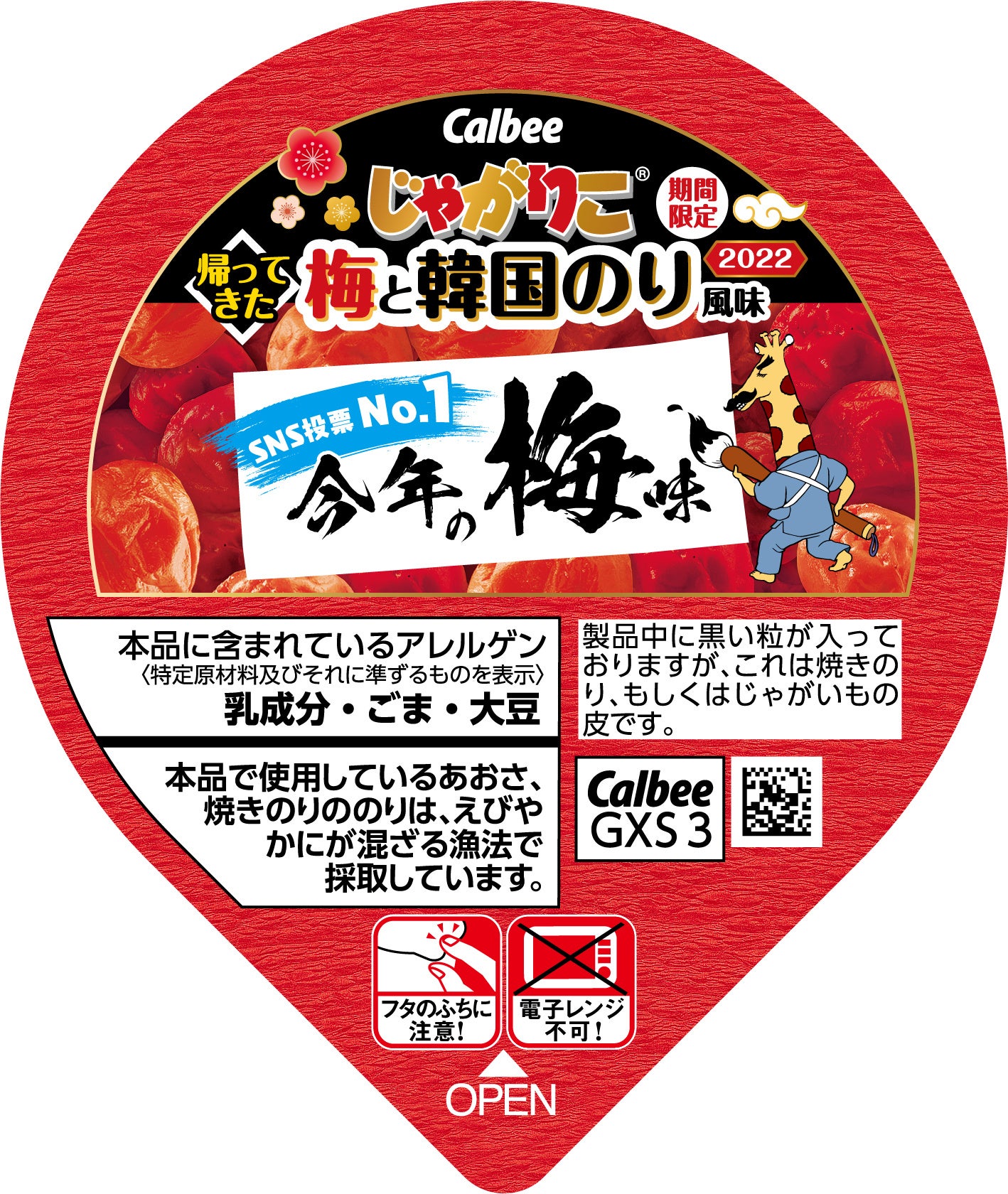カルビー株式会社(本社:東京都千代田区、代表取締役社長:伊藤 秀二)は、独自の製法で“はじめカリッとあとからサクサク”の心地よい食感が楽しめる「じゃがりこ」ブランドから、Twitter投票で選ばれた人気フレーバーを復刻する“帰ってきた”シリーズの第二弾商品として『じゃがりこ 帰ってきた梅と韓国のり風味』を2022年2月14日(月)から、全国のコンビニエンスストア先行で期間限定発売します(2022年6月中旬終売予定)。コンビニエンスストア以外の店舗では2022年2月28日(月)発売(2022年6月下旬終売予定)。