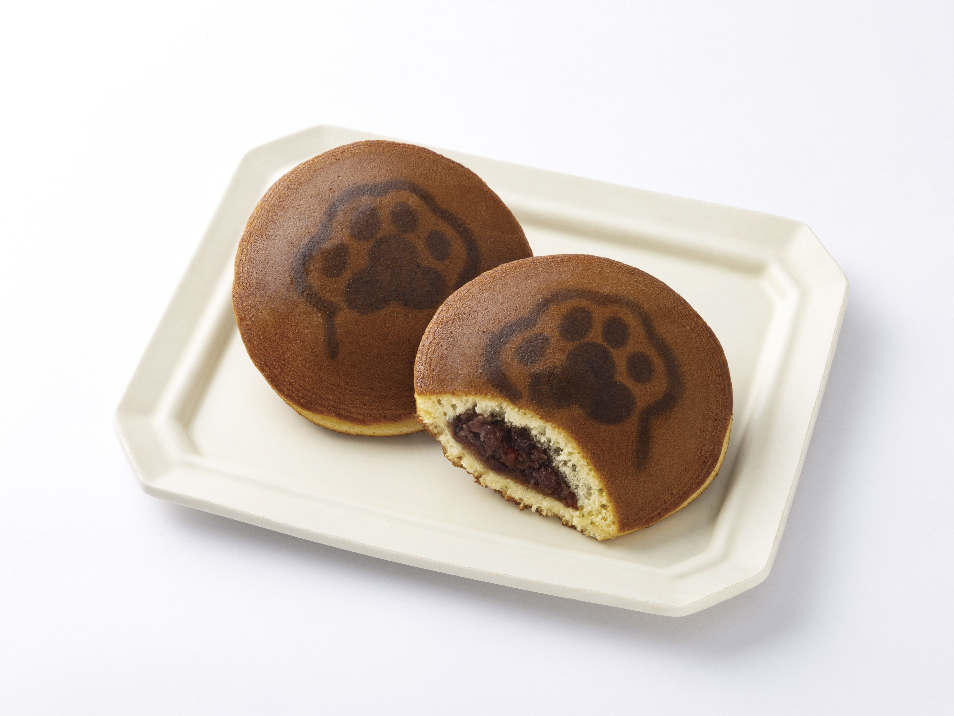 北海道契約農園直送の小豆を丁寧に炊いた粒餡のどら焼に可愛らしい肉球をプリントしました。