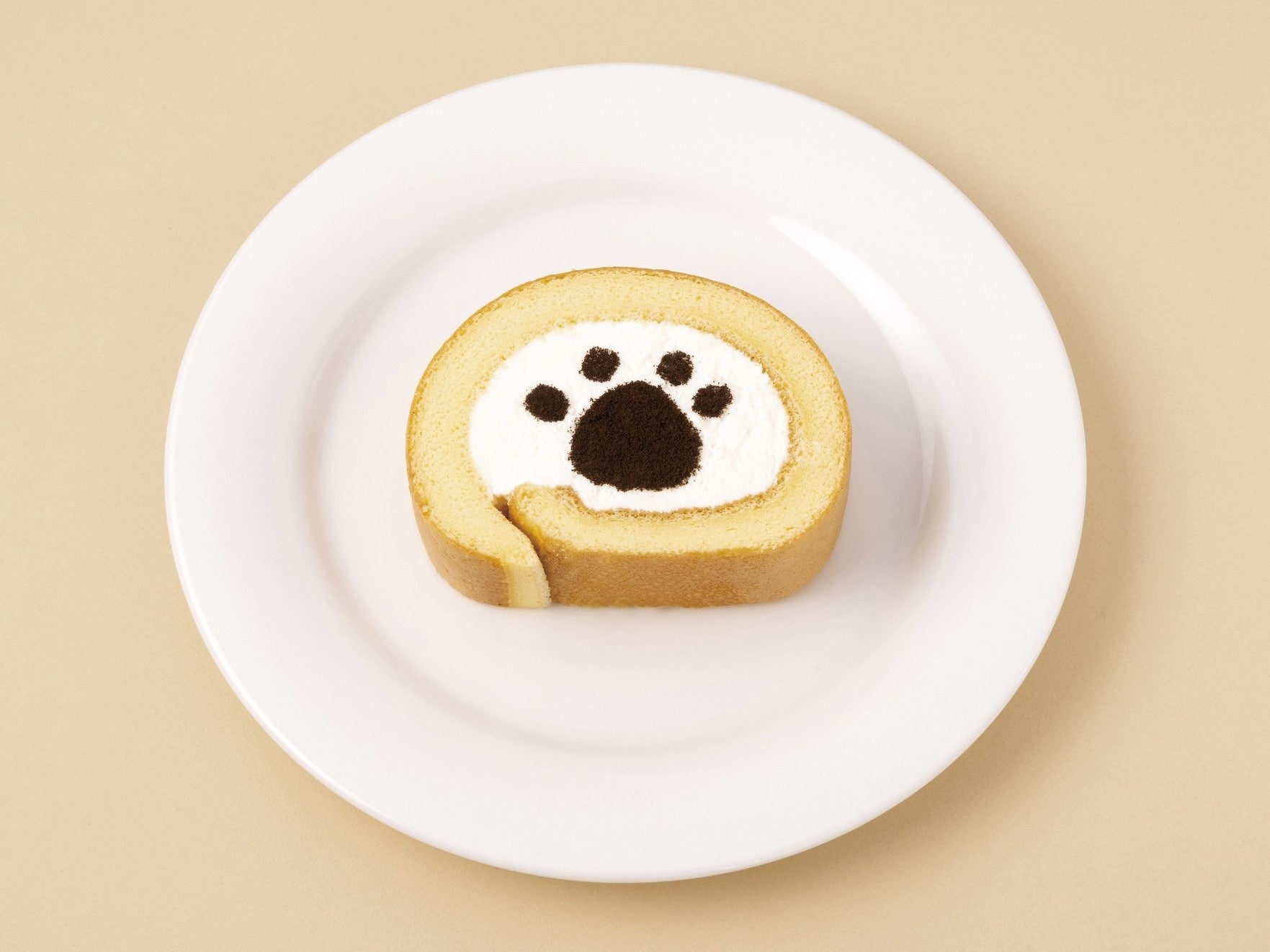 練乳を練り込んだスポンジ生地に軽いシャンティクリームを巻き込み、猫の足跡をココア生地で付けた猫の日限定のロールケーキです。