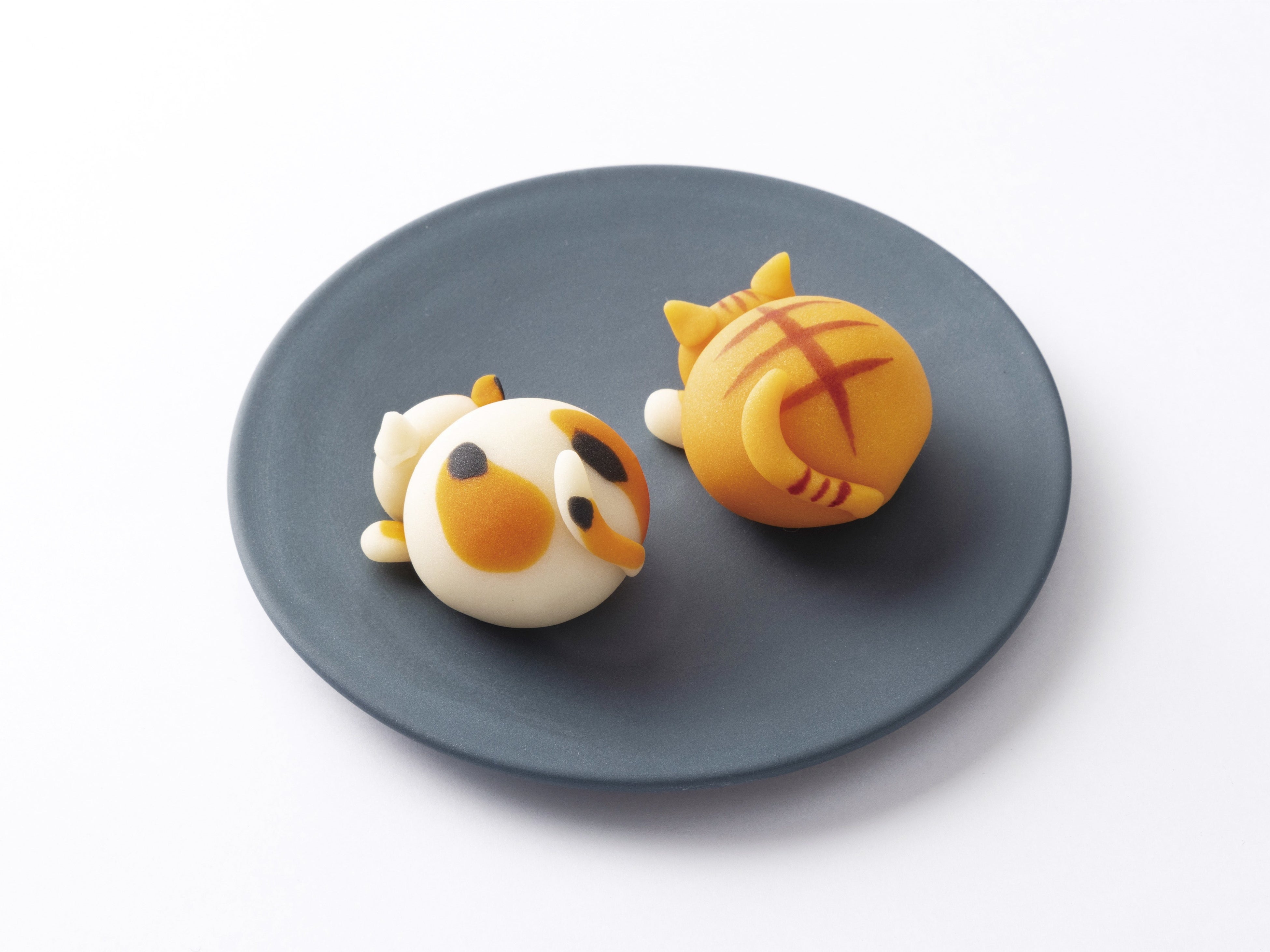 かわいらしい三毛猫と茶トラ猫が丸くなった姿を模した創作上生菓子の詰合せです。