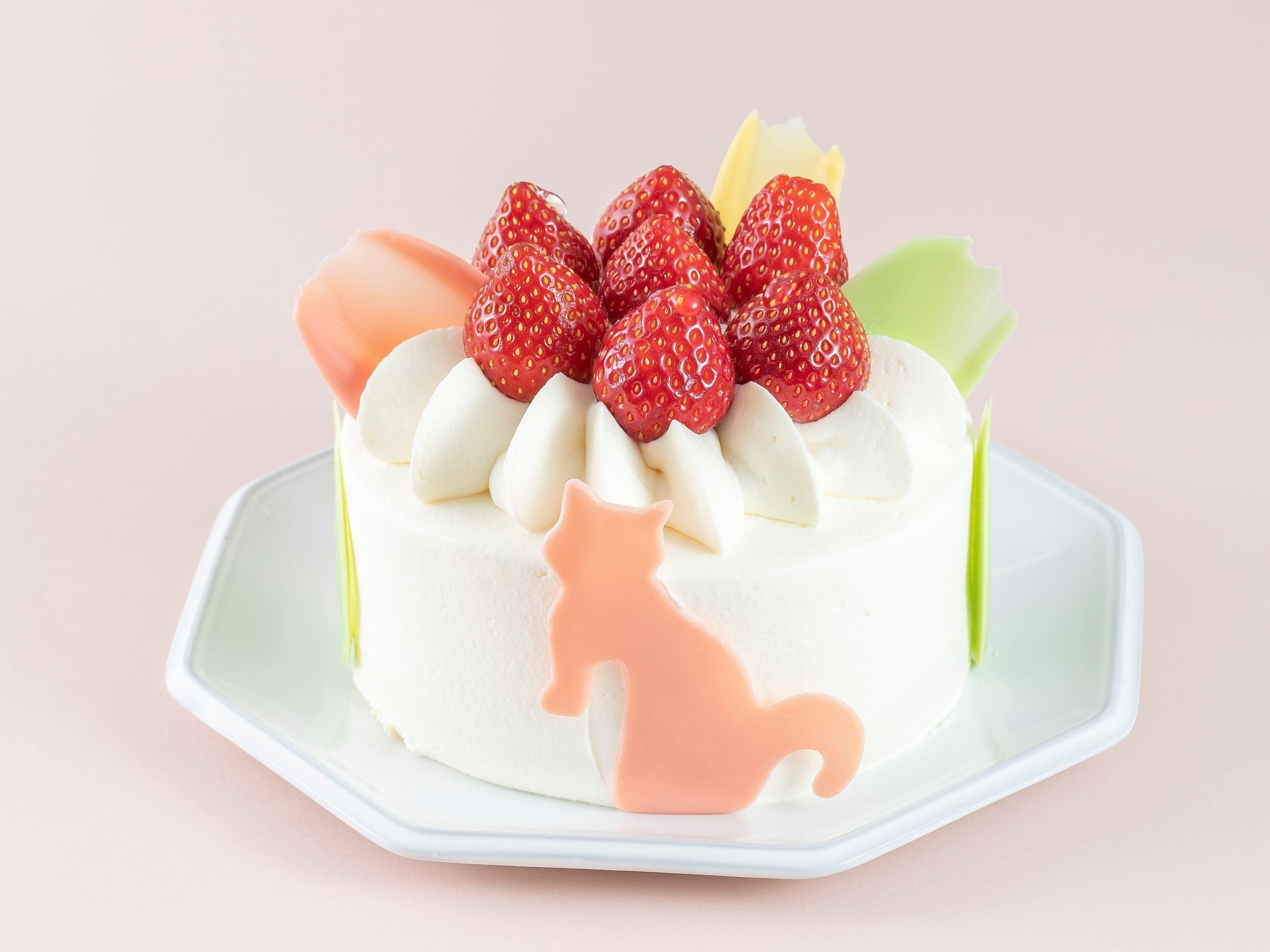 国産苺、北海道産生クリームを100%使用した一番人気のショートケーキ。この時期だけのこねこのシルエット付きです。