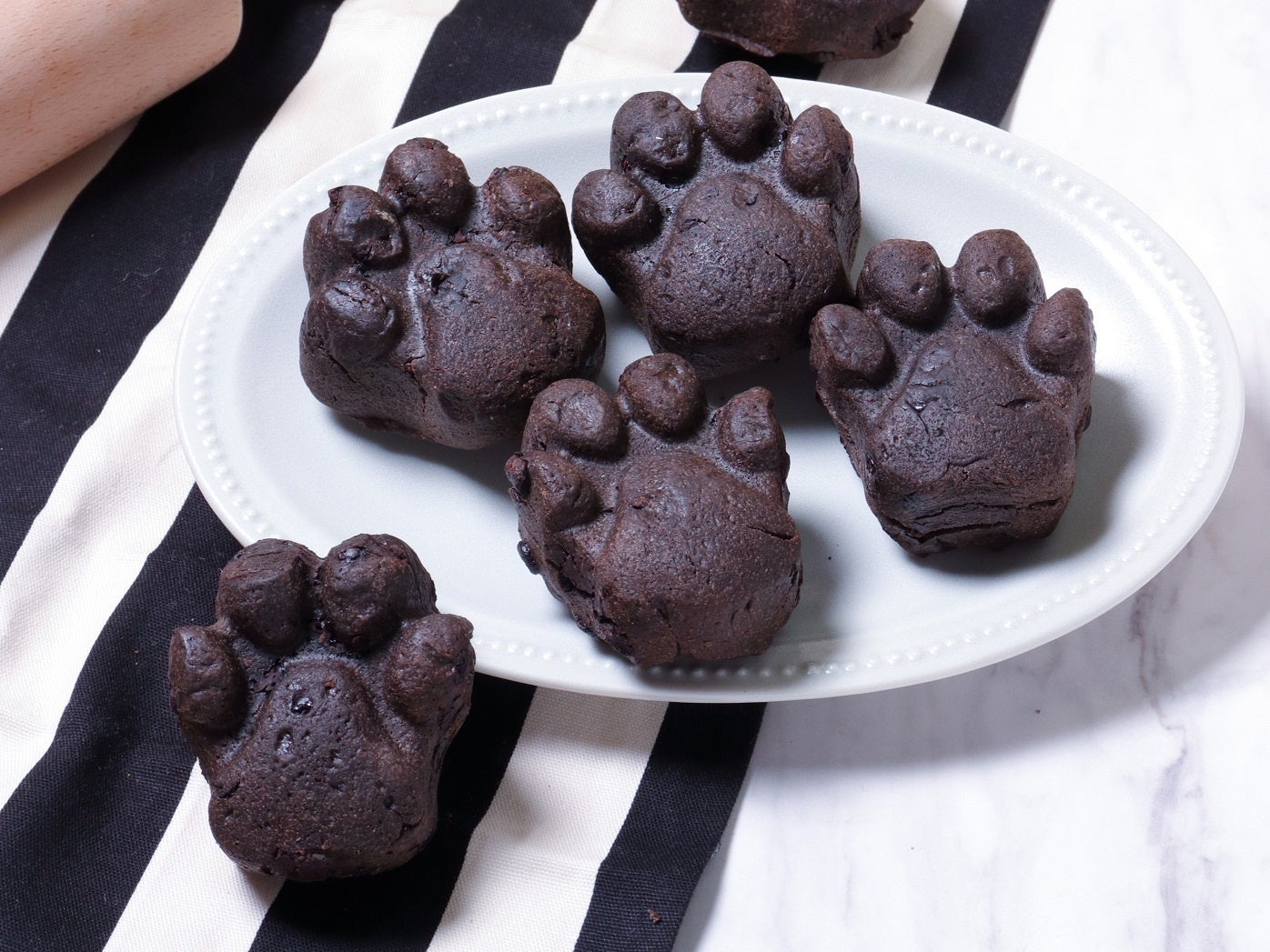 ブラックココアとチョコチップのスコーンを、可愛らしい肉球型に焼き上げました。
