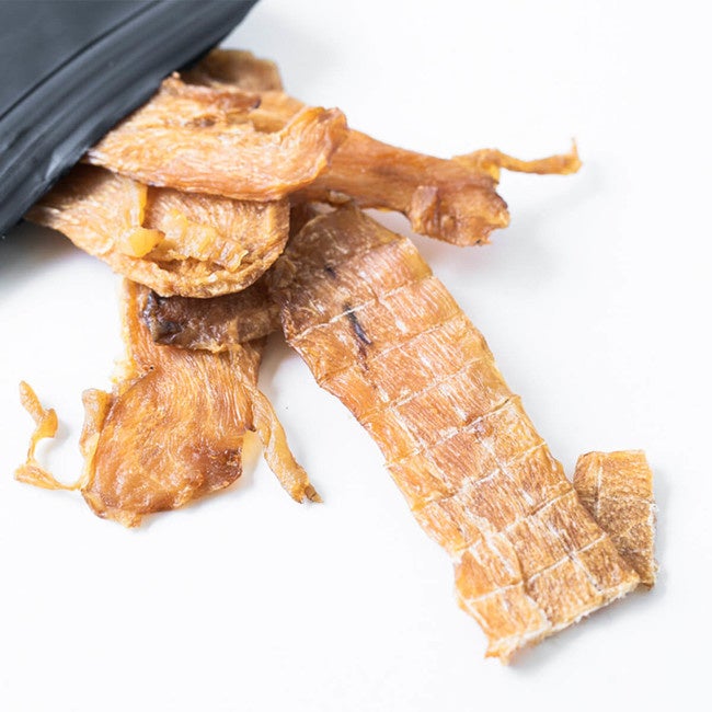 使用原料は、鶏肉、醤油、黒糖のみ。代用油脂、調味料、人工添加物、増粘剤は一切使用せず、お肉本来の味わいをお楽しみいただけます。お肉が本来持つ良質な脂のみでできているので、通常のジャーキーとは違う“サクサク食感”が特徴です。たんぱく質も補えます。