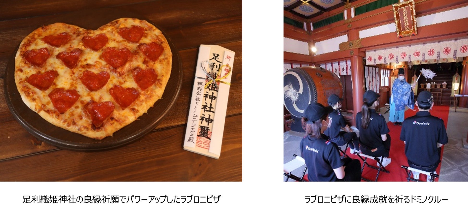 さらに、ドミノ・ピザでは、皆さまの縁結びをお手伝いできないかと考え、コロナ禍で神社への参拝を控えている皆さまの代わりに、「ラブロニピザ」の良縁祈願を行いました。2月3日に、「恋人の聖地」に認定されている足利織姫神社(栃木県足利市)の本殿にて、各サイズの「ラブロニピザ」に向けて、神主様に良縁祈願のご祈祷を行っていただきました。