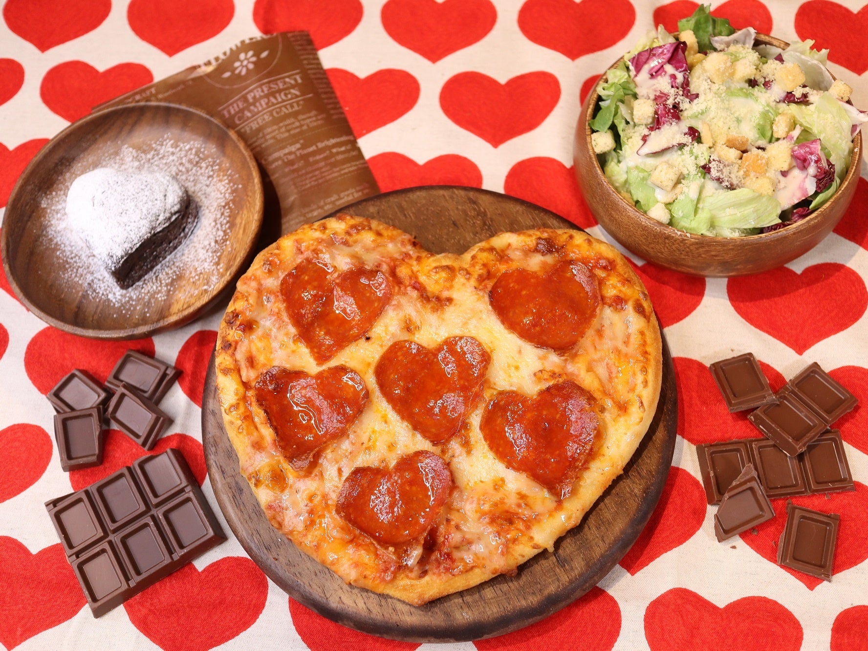 【バレンタイン限定セットも登場!ハート型のピザとサイドメニューがお得に。】