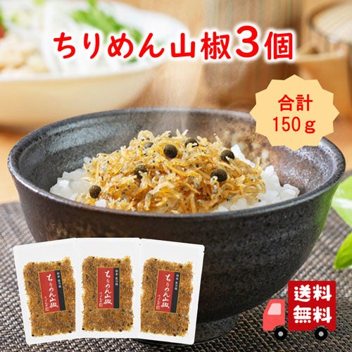 じっくりと炊き上げることで本来の味を引き出した当店自慢の『ちりめん山椒』(50g)の3個セットです。 しっとりやわらかい食感で、甘辛い味付けに山椒のピリッとした辛味が食欲をそそります。 ご飯のお供、お酒のおつまみにもおすすめです。