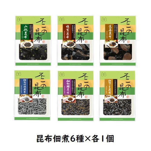 - 定番の不二の昆布シリーズから6種の佃煮をアソートしたバラエティセットです