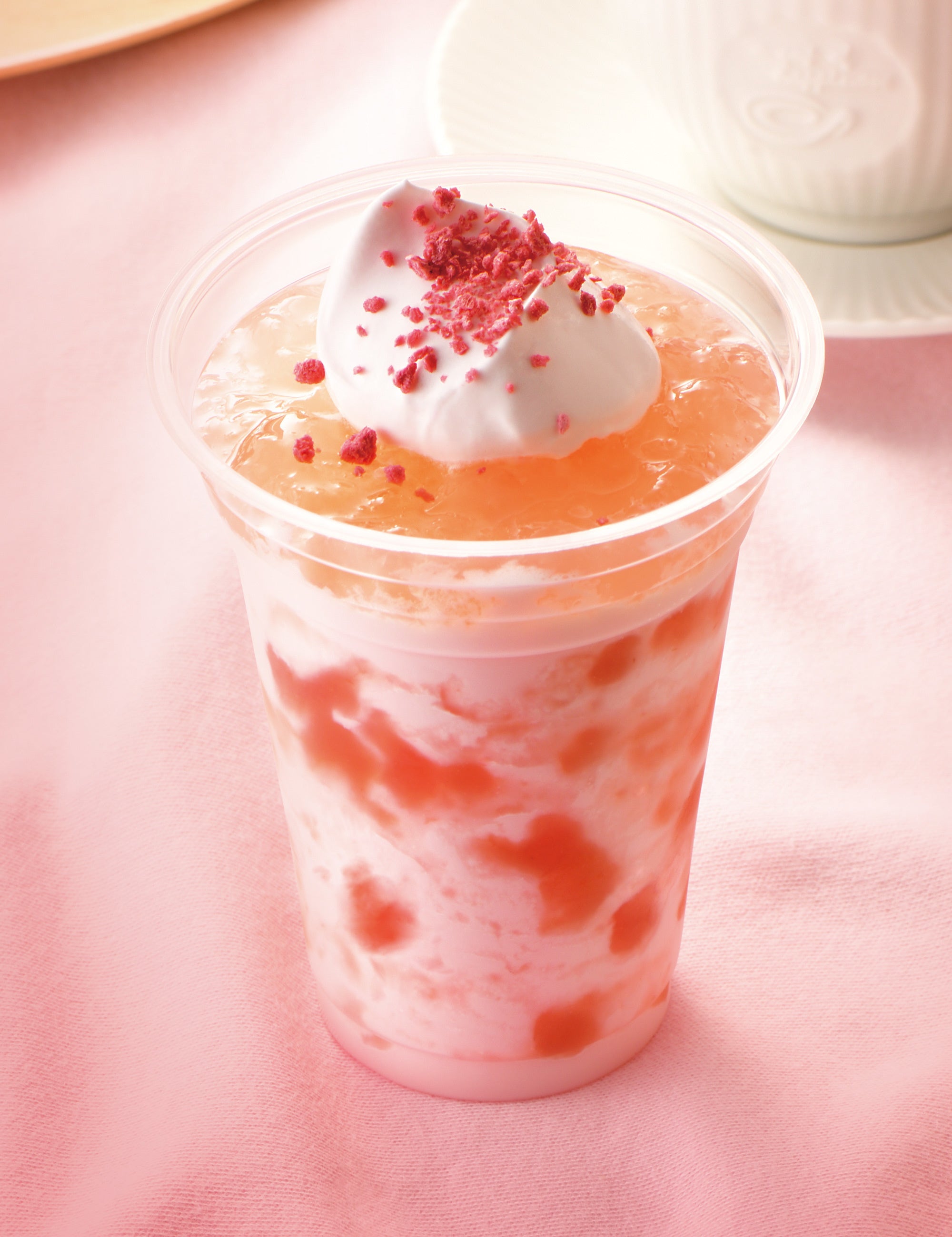 「ソルベージュ®さくら日和~桃香る~」は、オリジナルのさくらソースと北海道牛乳をあわせたソルベージュ®に、ジューシーな桃のジャムをあわせたフローズンドリンクです。トッピングにはみずみずしい桃のジュレに、店内仕込みのさくらホイップとさくらのクランチをのせ、満開のさくらが咲き誇るような見た目に仕上げました。さくらの華やかな味わいと桃のフルーティーな香りが、満開のさくらのように口いっぱいに広がります。ぜひ「さくら日和」の時期にお楽しみいただきたい一品です。