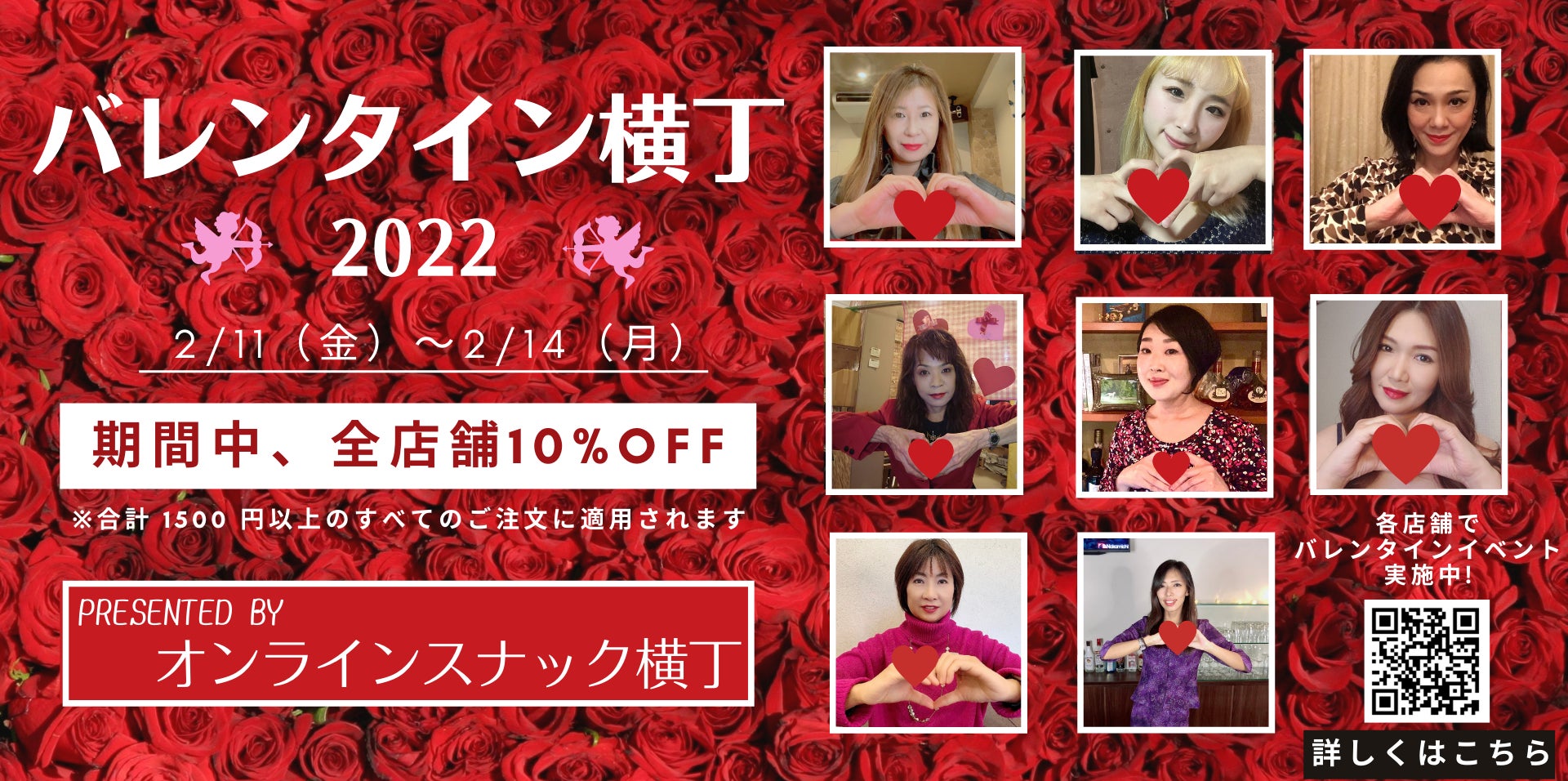 スナック業界のDX化を推進するオンラインスナック横丁文化株式会社(本社:東京都千代田区 代表取締役:五十嵐真由子)が運営する「オンラインスナック横丁」では、加盟する全国のスナックママによる各店舗オリジナルのバレンタインデー企画を開催すると共に、対象期間中合計1,500円以上のご注文で合計金額10%OFFとなる「バレンタインデー横丁2022」(以下、「本企画」)を2月11日(金)〜2月14日(月)に開催いたします。まん延防止等重点措置による時短営業対応など未だ苦境に立たされるスナックのママ達をこの機会に是非応援ください。