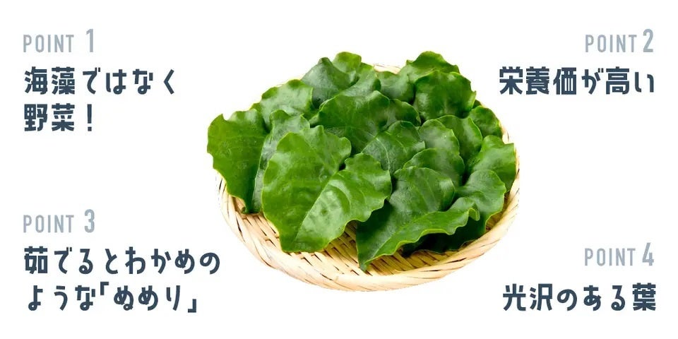 南アメリカや熱帯アジアにて自生するつる性の多年草。日本へは“長寿の薬草”として琉球列島へ渡来しました。茹でるとワカメのようなぬめりがでるので「おかわかめ」と呼ばれています。
