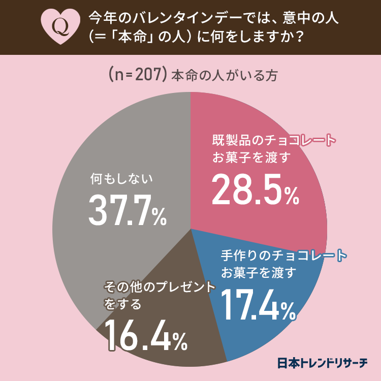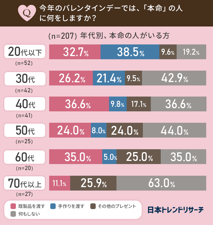 ■「本命」へのバレンタイン、20代以下は「手作り派」が38.5%、30代以上は「既製品」か「何もしない」方が多い