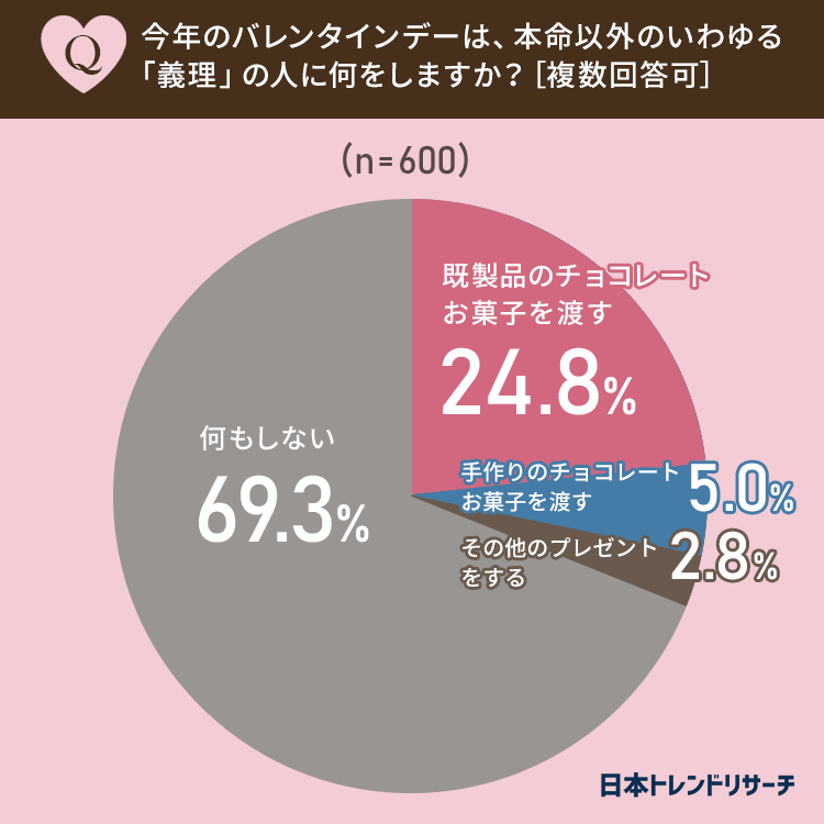 一方で、「義理」の人へは69.3%と約7割の方が「何もしない」と回答しました。