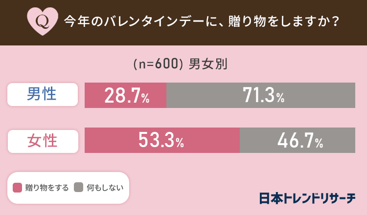 今回は、性別を問わずバレンタインデーに贈り物をするかについて聞いてきました。