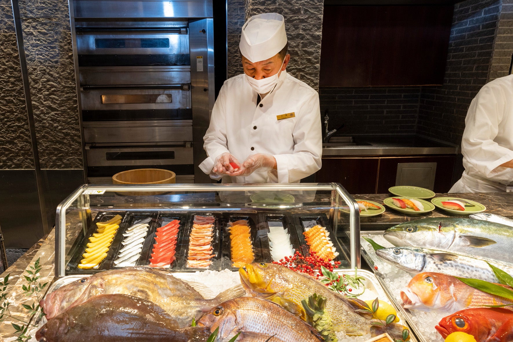 - ディナー限定「握り寿司コーナー」。産地直送の魚も使用!