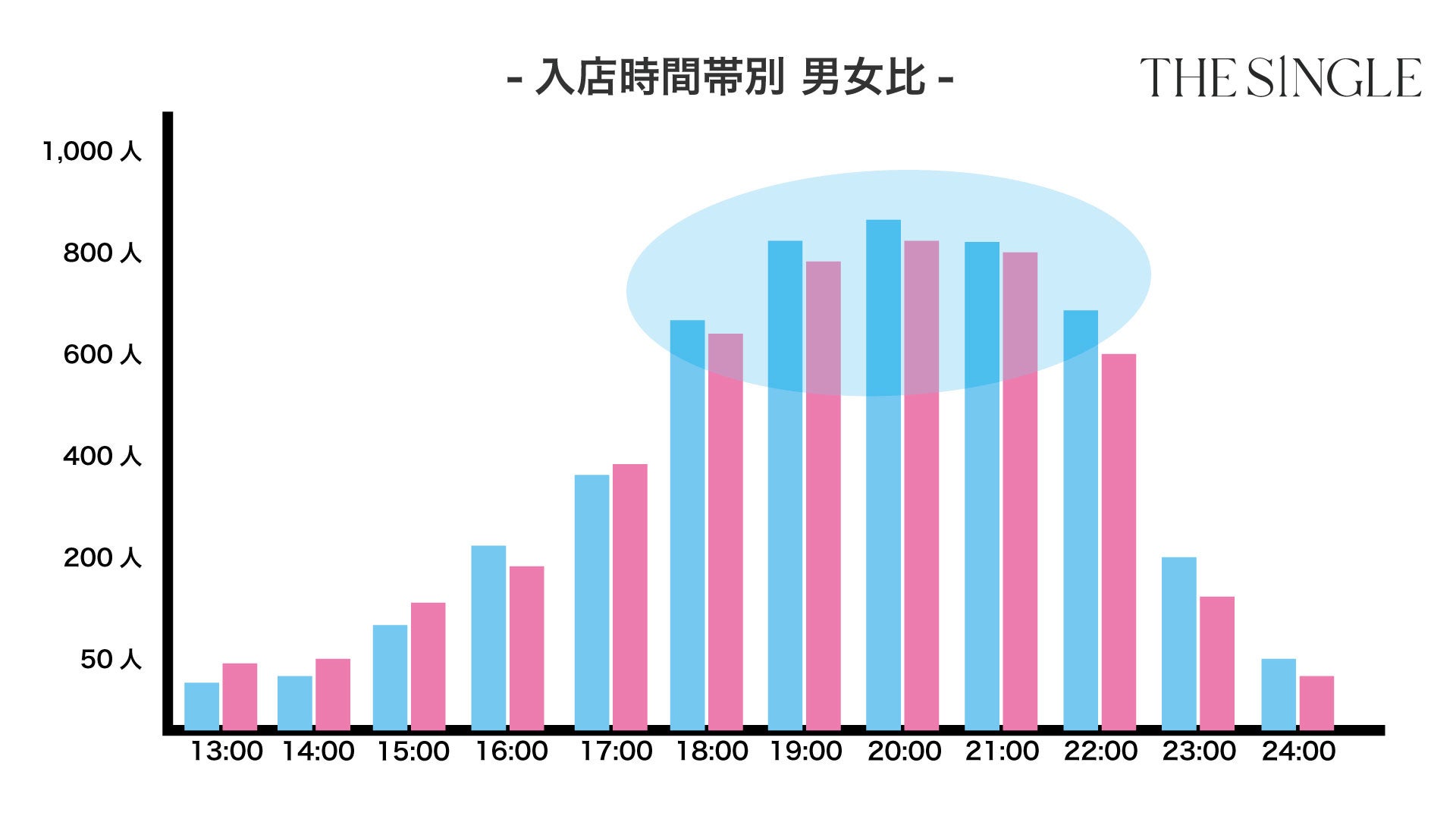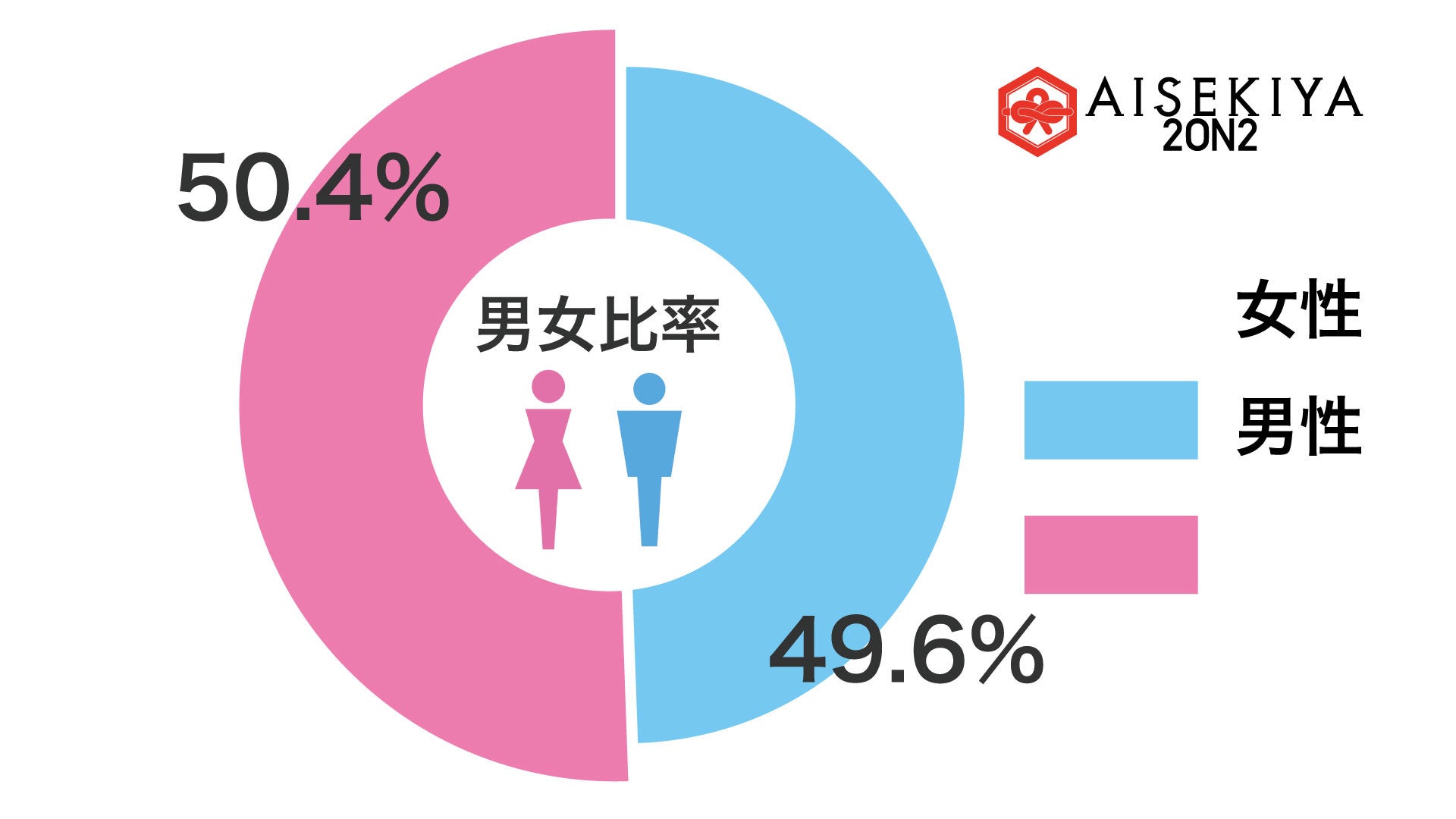 また、男性来店数のうち初めて来店した男性は4,491人、2回以上来店した男性は1,847人、女性来店数のうち初めて来店した女性は3,678人、2回以上来店した女性は2,764人と、男性女性ともに初めてAISEKIYA 2ON2へ来店した割合は相席屋に比べて、圧倒的に多いことがわかります。(参照:「2021年度総相席回数106,083回突破!〜数字で見る2021年度相席屋・THE SINGLE〜」https://prtimes.jp/main/html/rd/p/000000113.000037097.html)