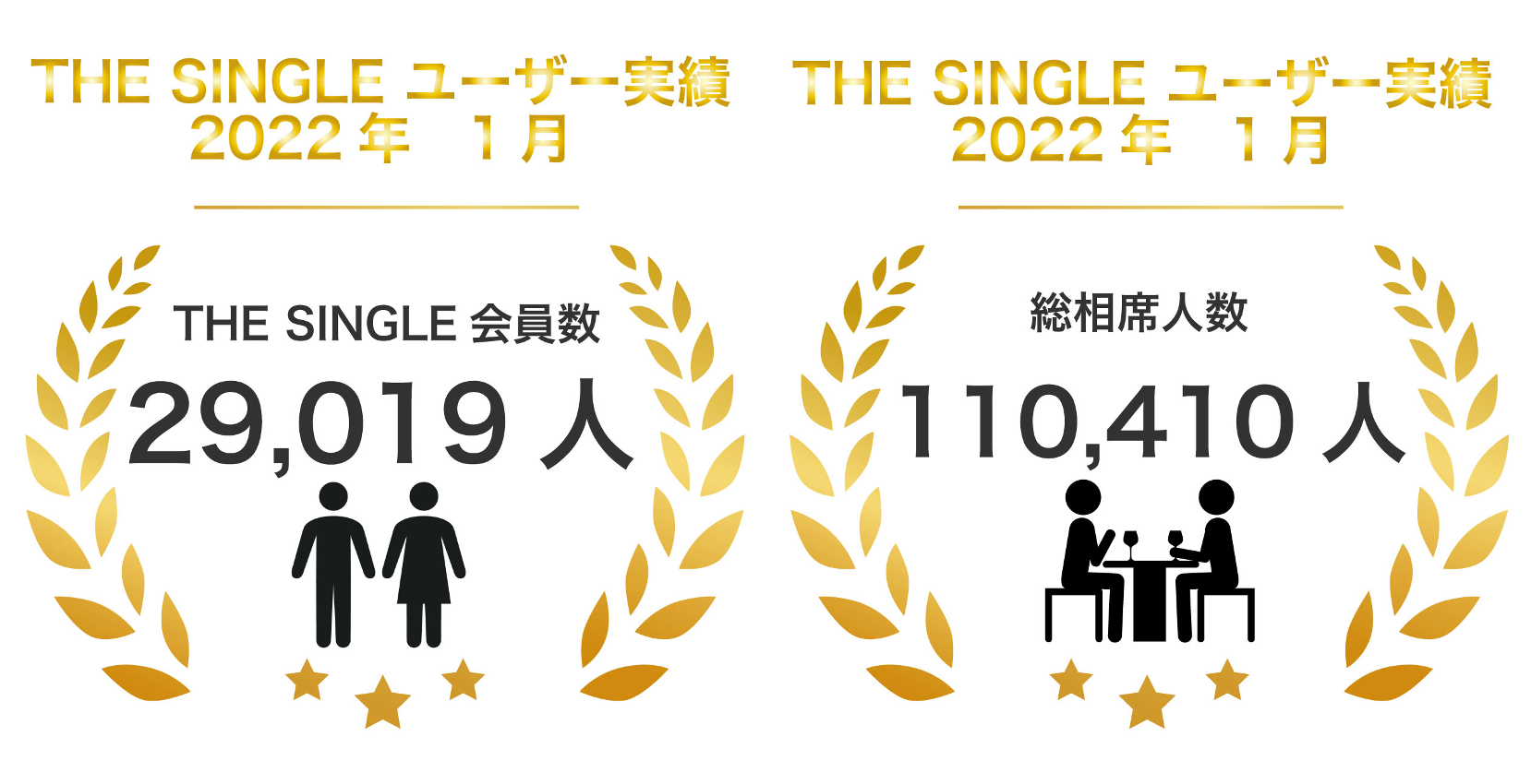 2022年度1月のTHE SINGLEは、THE SINGLE会員数29,019人、相席人数110,410人を突破いたしました。2020年、2021年は新型コロナウイルスの感染拡大や緊急事態宣言などで国内外の経済活動が収縮し、また最近ではオミクロン株の猛威などもあり回復の兆しが見られていた経済活動が、まだ先行きの見通しが困難になっています。こういった状況下においても、THE SINGLEでは前月に比べて、約4,000人以上の男女が新たに会員登録しています。