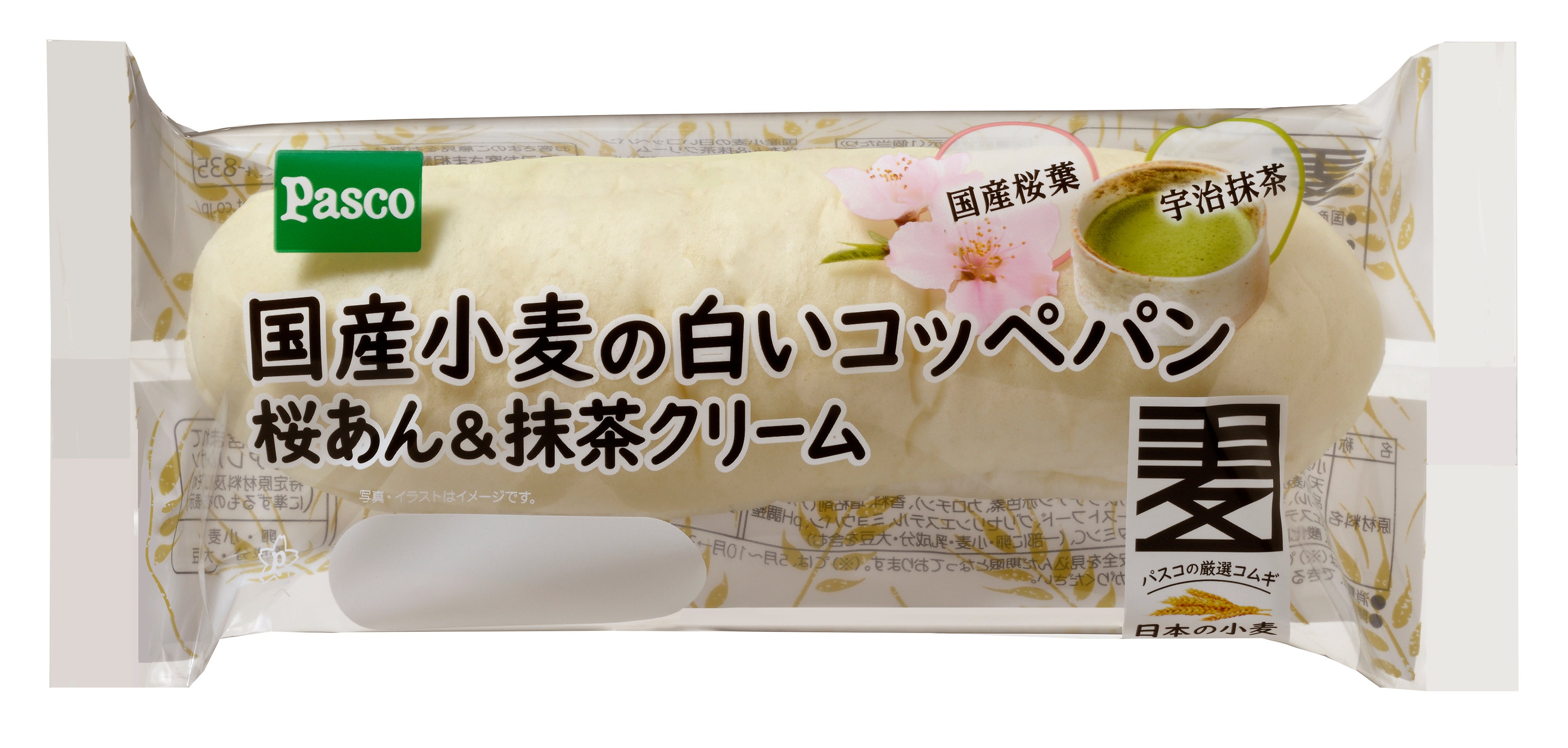 敷島製パン株式会社(Pasco)は、国産小麦シリーズの新商品として、「国産小麦の白いコッペパン 桜あん&抹茶クリーム」を、2022年3月1日より関東、中部、関西、中国、四国、九州地区にて発売します。