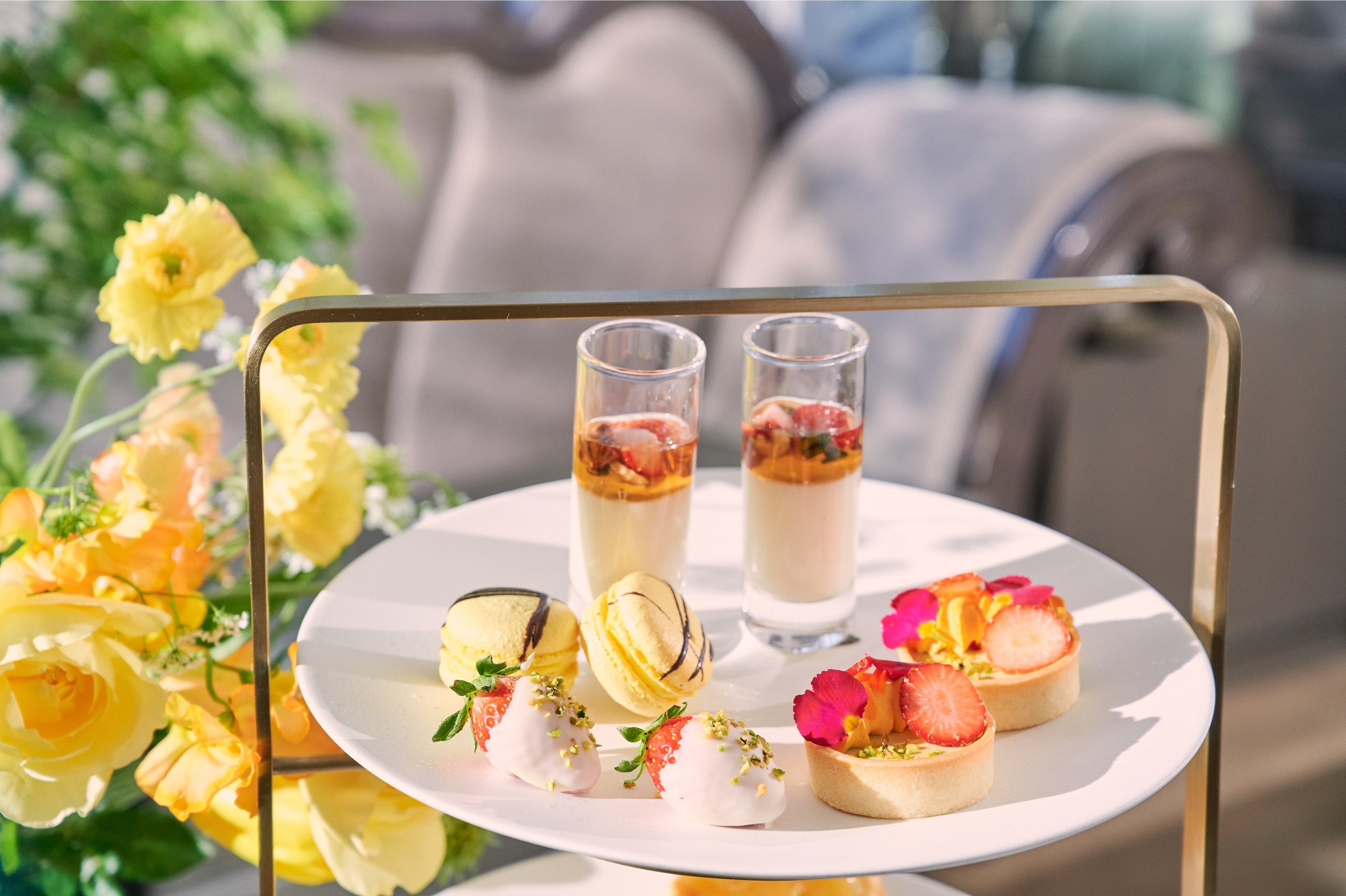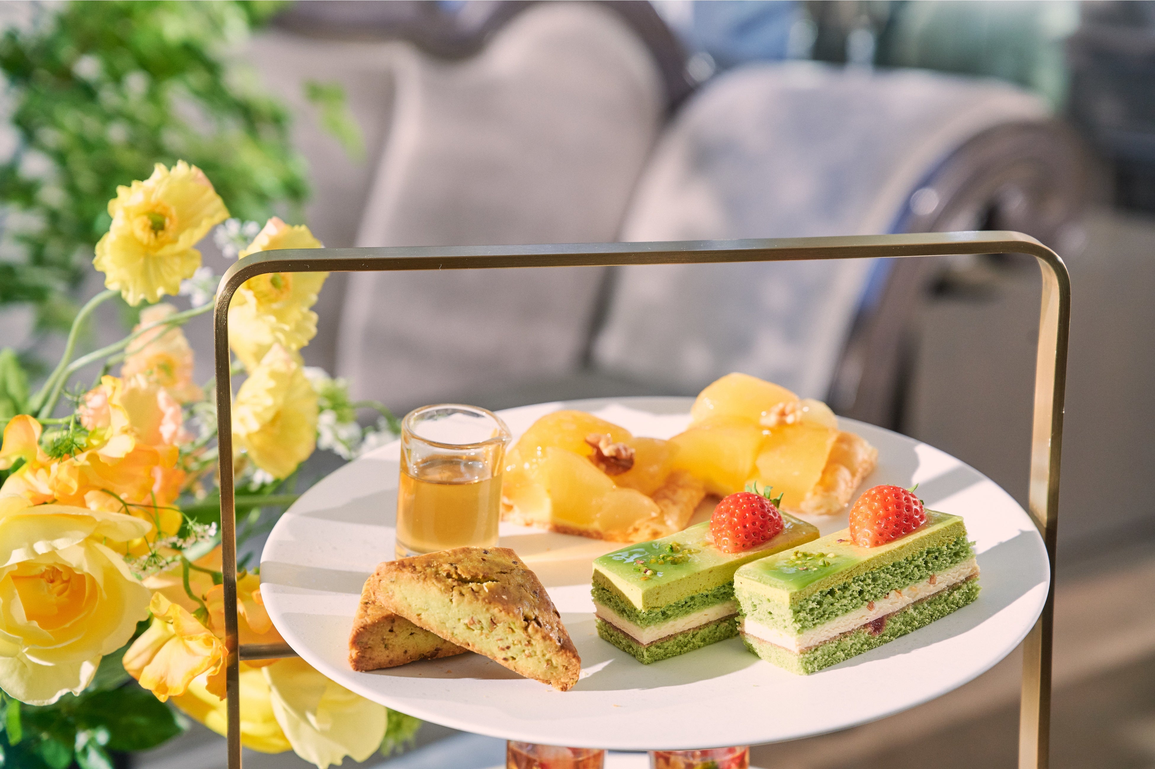 旬のみずみずしい苺と相性の良いピスタチオ、ハニーをあわせたスイーツの数々をお楽しみいただけるアフタヌーンティーをご用意いたしました。