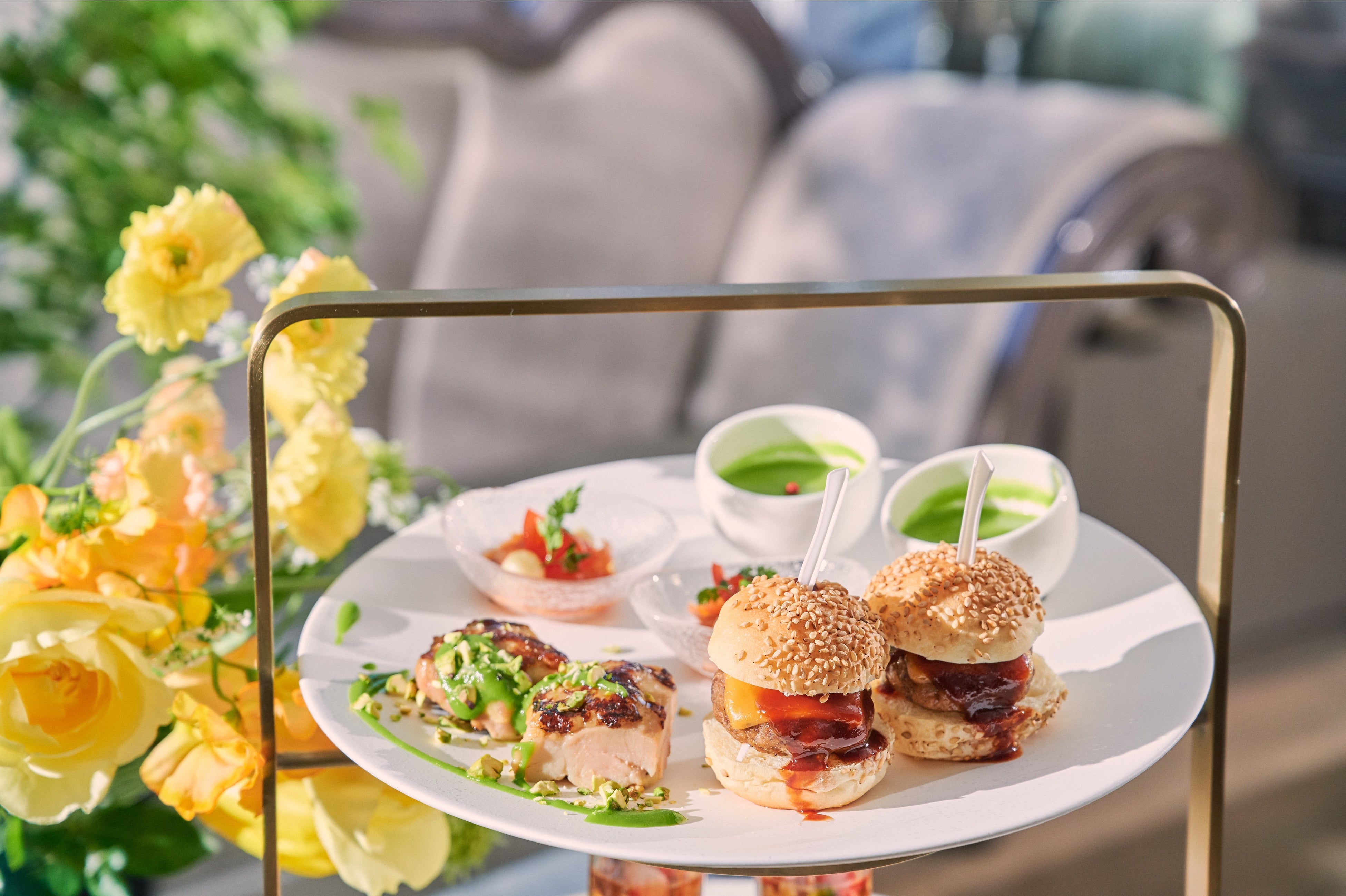 「しっかりと食事も楽しみたい」というお声を受け、ブランチメニューの中からメインディッシュをチョイスいただける、アフタヌーンティー付ランチもご用意しておりますので、気分やシーンに合わせてお選びください。