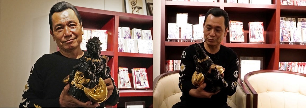 現在、ボトルは原先生のオフィスにも飾っていただいており、風格のある『黒王号ボトル』にご満足いただいております。同封のリーフレットには、原哲夫先生からのメッセージもございますのでそちらもぜひお楽しみください。