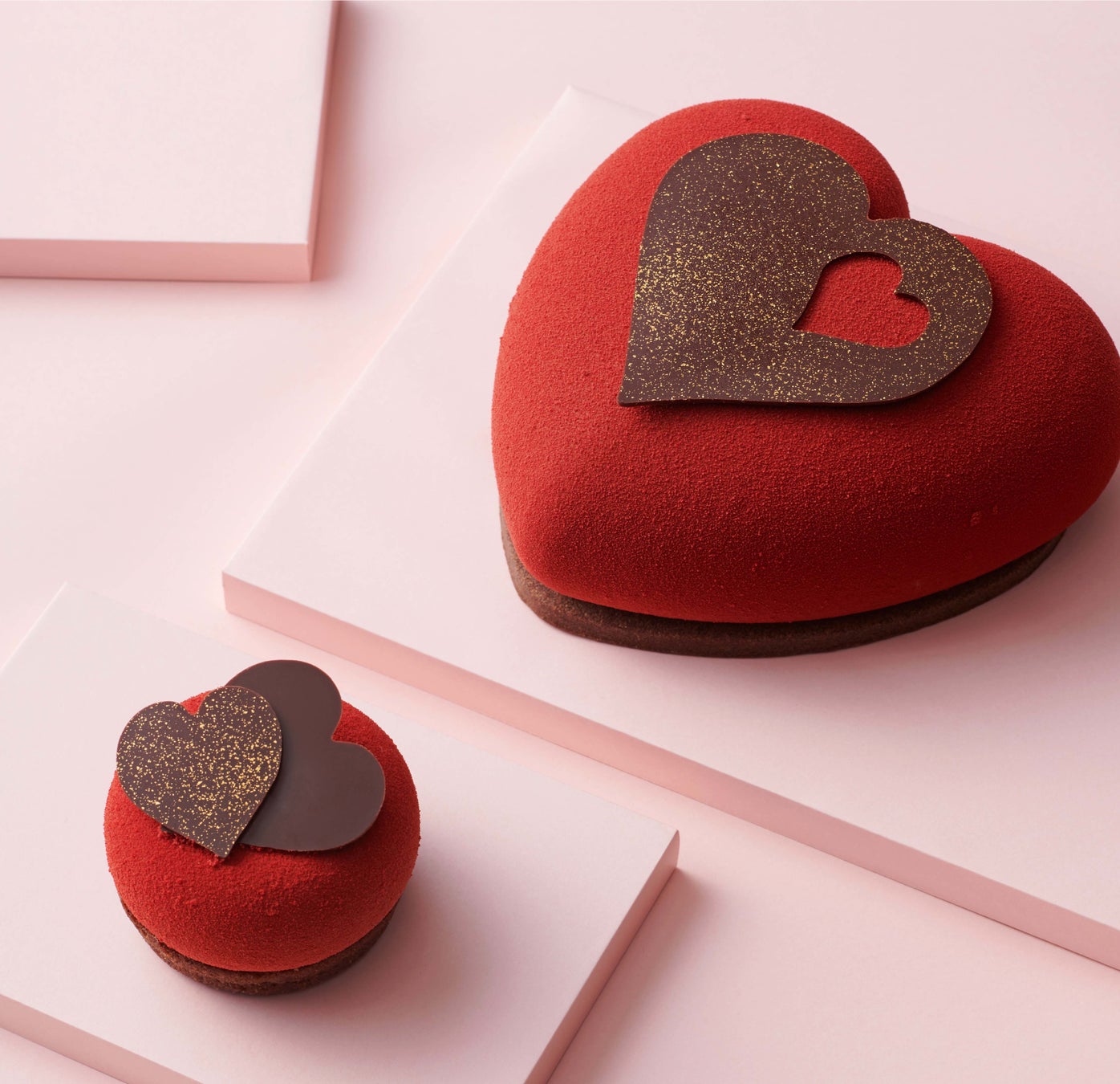 カカオ72%のショコラを使用した、コクのあるショコラムースで甘酸っぱいフランボワーズジュレを包みました。バレンタインにおすすめの、真っ赤な色が印象的な華やかなケーキです。