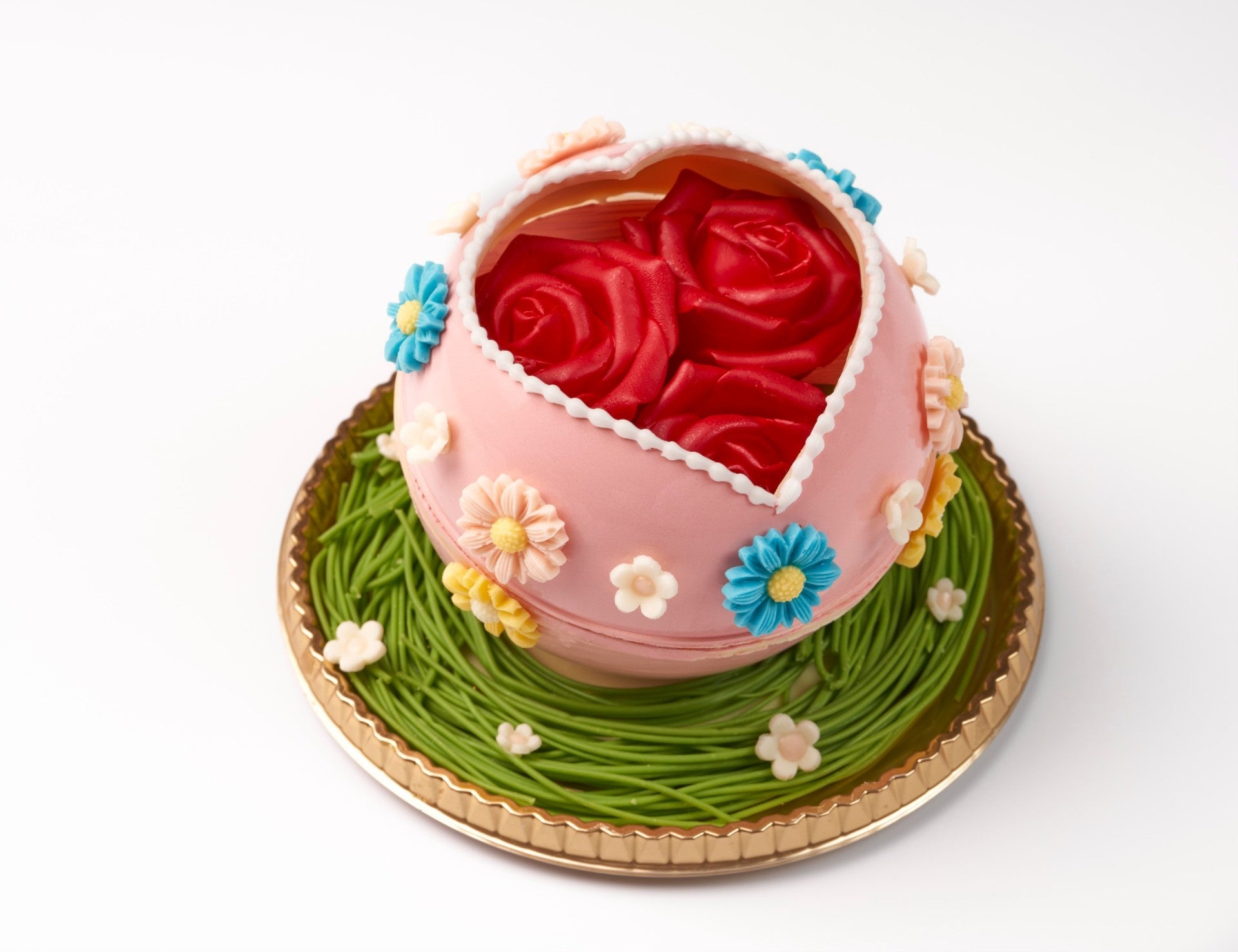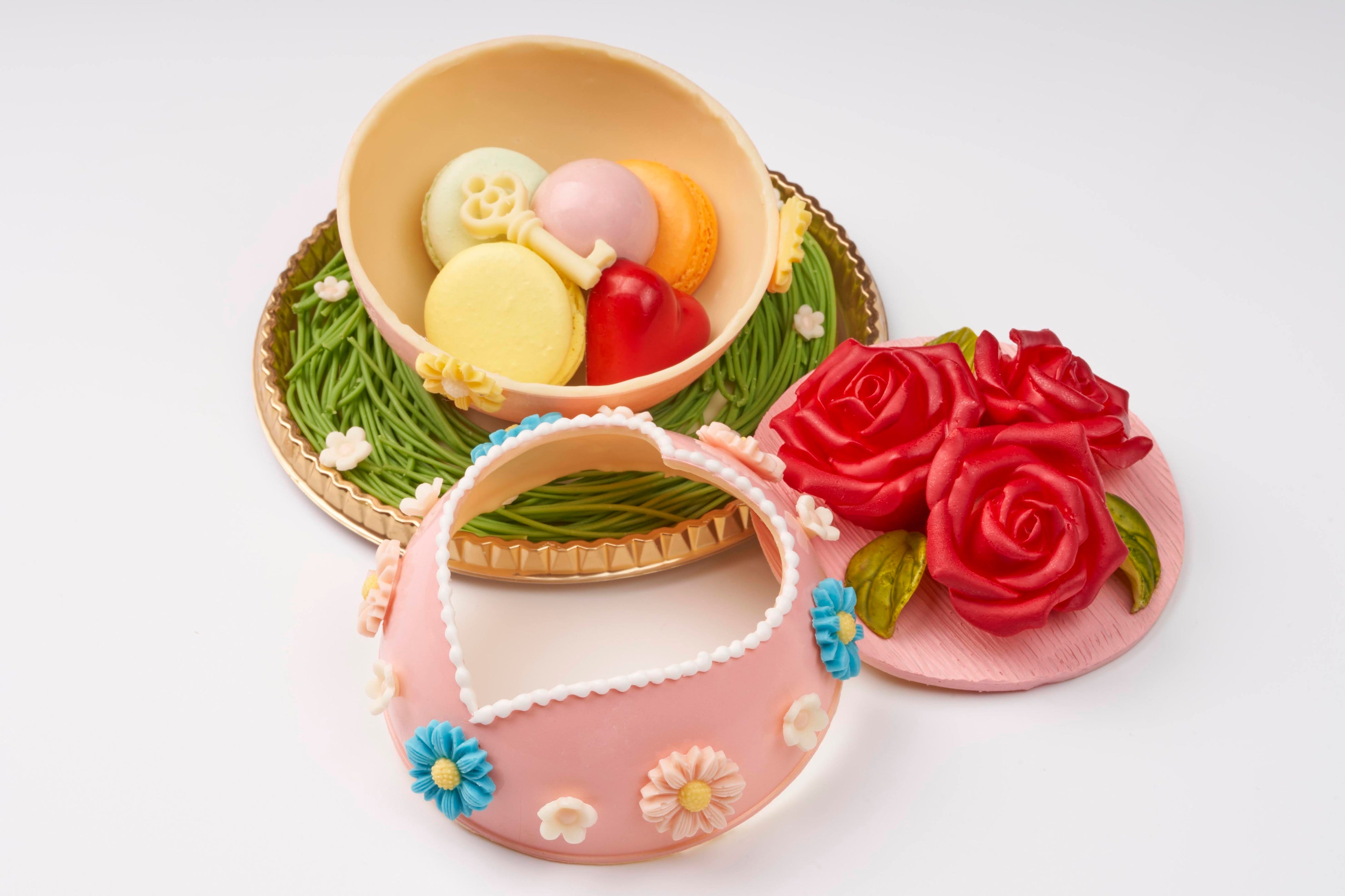 「愛情」の花言葉をもつ深紅のバラがブーケのようにあしらわれており、普段はなかなか伝えられない相手への気持ちを密やかに告げるスイーツです。中には可愛らしいマカロンやボンボンショコラと、心の扉を開く鍵をモチーフにしたチョコレートが入っています。受け取った方が思わず笑顔になるようなキュートで情熱的なギフトです。