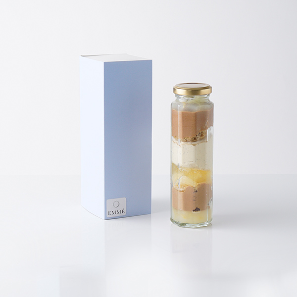 瓶の中で柑橘やチョコレート、コーヒーのクリームなど11層がハーモニーを奏で、酸味と甘みをお楽しみいただける大人なデザートに仕上げています。