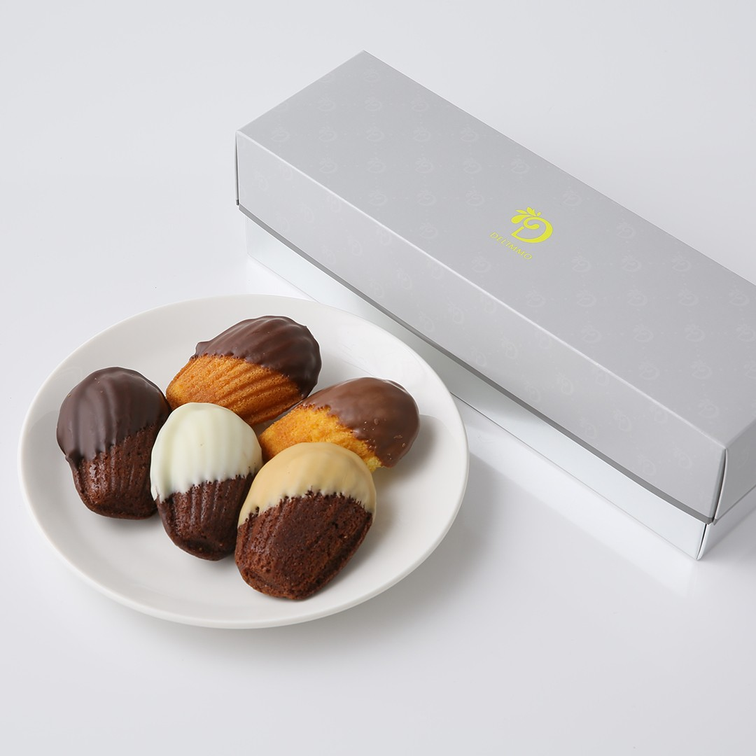 【デリーモ】カカオの産地や苦みの異なるチョコレートをディップしたショコラマドレーヌ