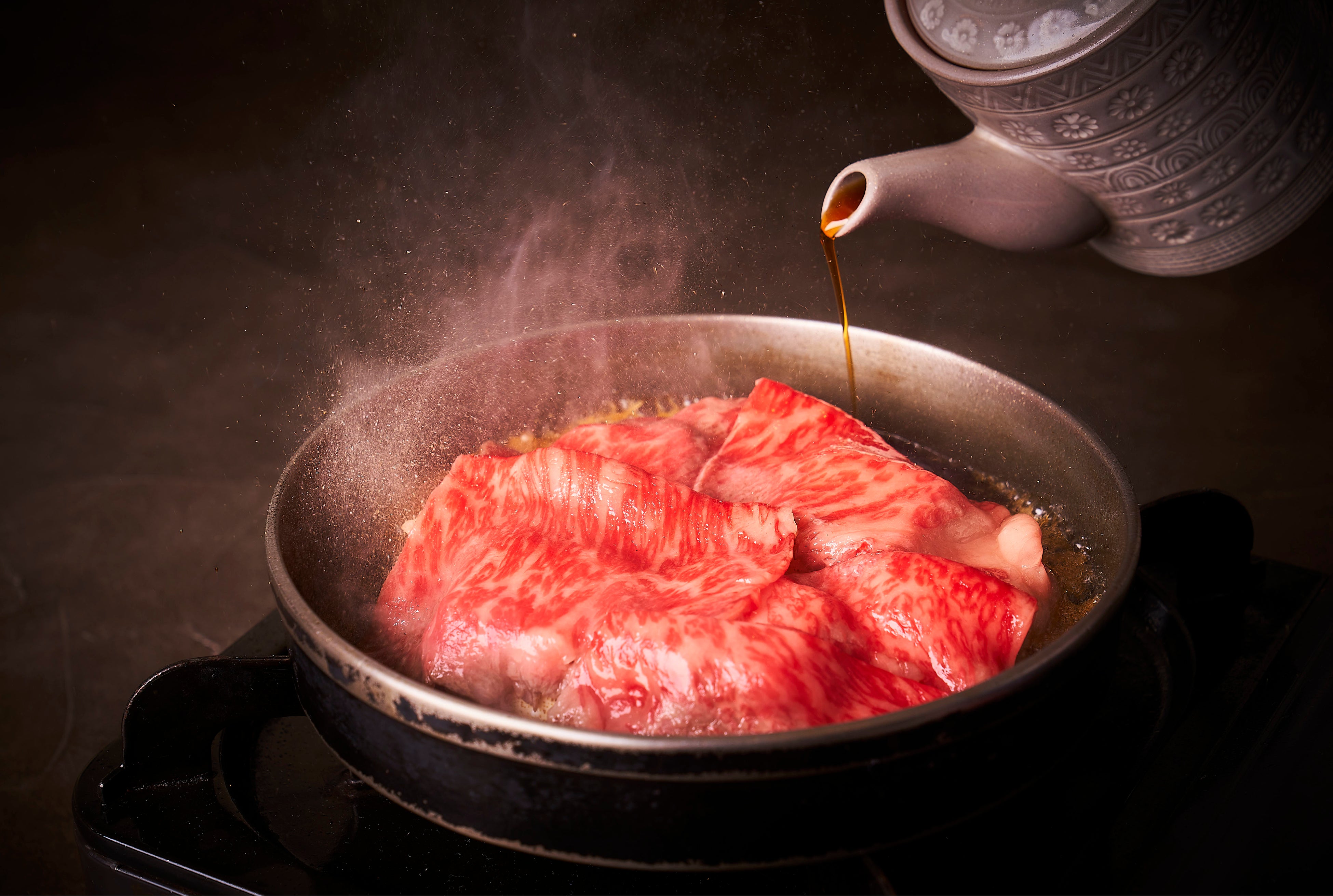店舗には精肉売店も擁し、すき焼きに使用する食材(肉)は黒毛和種のメス牛肉に限定。2017年には「適サシ肉」を宣言し、A5等級の使用をやめるとともに、「適サシ肉」を商標登録(登録第5980224号、登録日:2017年9月15日)するなど、「すき焼き文化」の醸成に努めてきました。