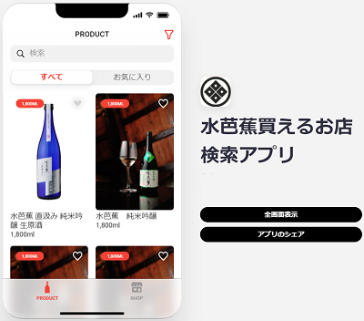 今回の発売に伴い、弊社のお酒を取扱うお店を手軽に探せる「水芭蕉買えるお店検索アプリ」を公開いたします。