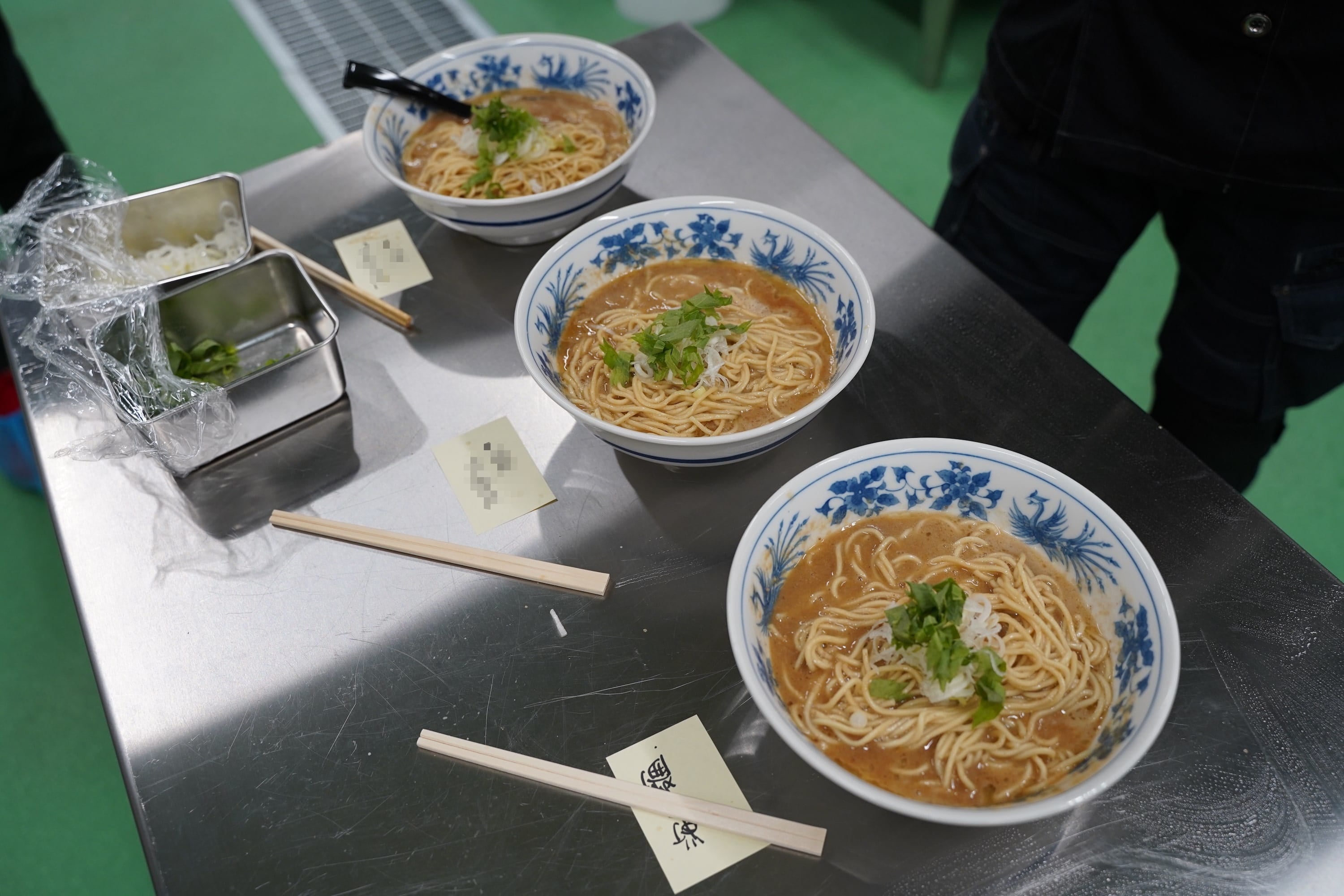 【写真2】店舗で使用している麺と宅麺クラウドキッチンで製麺した麺をスープと合わせて食べ比べ。