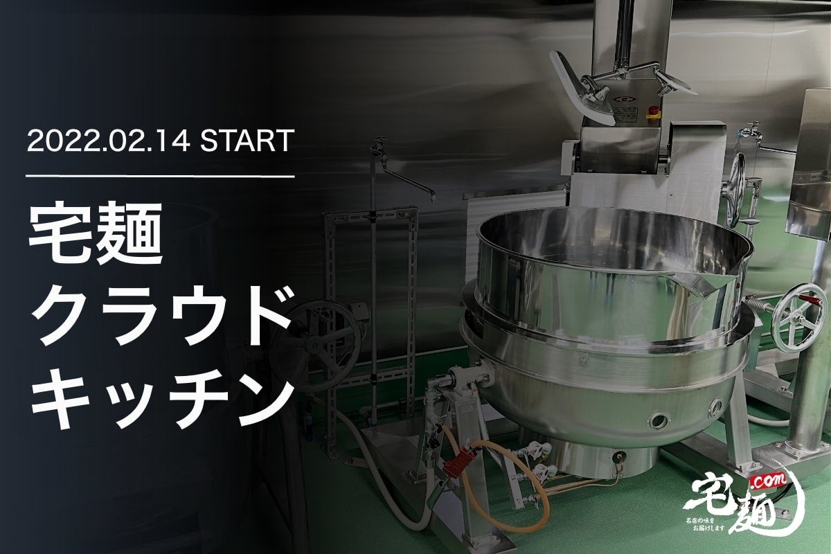 2022年2月14日より新たに稼働開始した「宅麺クラウドキッチン」は、「宅麺.com」の一部パートナー店舗に代わって、その店舗と全く同じ品質の冷凍ラーメンを製造する施設です。「宅麺.com」ユーザーから高い需要があるものの、人手不足や設備事情から商品の供給が難しい、または供給量を今以上に上げられないというパートナー店舗の商品を製造の対象としています。