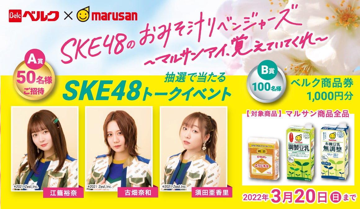 マルサンアイ株式会社(本社:愛知県岡崎市、代表取締役社長:堺 信好)は、関東で地域密着型のスーパーマーケットを展開する株式会社ベルク(本社:埼玉県鶴ヶ島市、代表取締役社長:原島 一誠)との共同企画「SKE48のおみそ汁リベンジャーズ~マルサンアイ、覚えていてくれ~」キャンペーンを2022年2月13日(日)より開始いたしました。