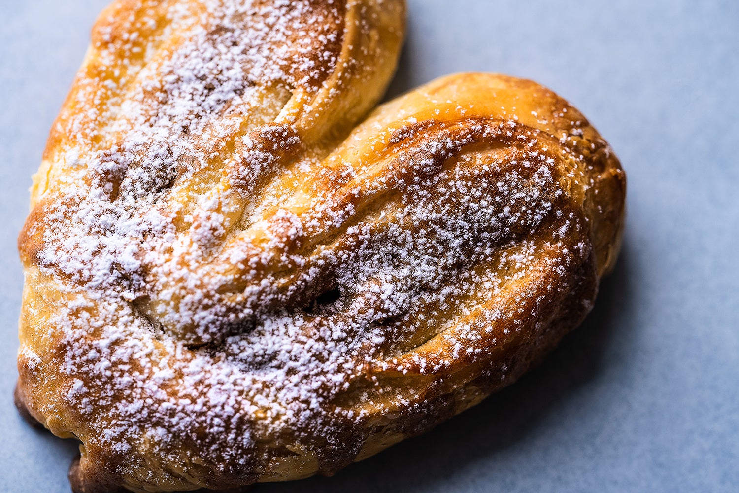 中に包み込んだキャラメルにはフレークが練り込まれており、表面のデニッシュ生地と合わせて“サクッ”とした食感をお楽しみいただけます。