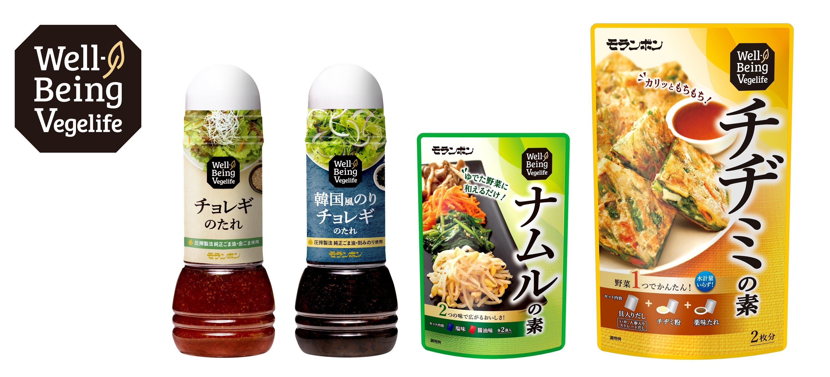 モランボン株式会社(本社:東京都府中市 代表取締役社長:全 峰 碩)は、青果売場向け商品として「Well-Being Vegelife チョレギのたれ」「Well-Being Vegelife 韓国風のりチョレギのたれ」「Well-Being Vegelife ナムルの素」「Well-Being Vegelife チヂミの素」を2022年2月15日(火)に新発売いたします。