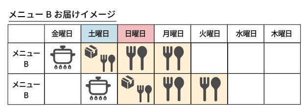 「火曜日・水曜日・木曜日」お届けのメニューと「土曜日・日曜日」お届けのメニューは異なります。