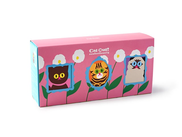 「ショコラねこ」、「ヒマラヤン」、「ベンガルねこ」が入った3個セットです。白い花が咲き乱れる、かわいいピンク色のパッケージでご用意いたしました。