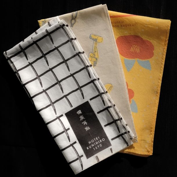 風呂敷の柄は、「國廣再臨」と「布袋国広」がデザインされています。