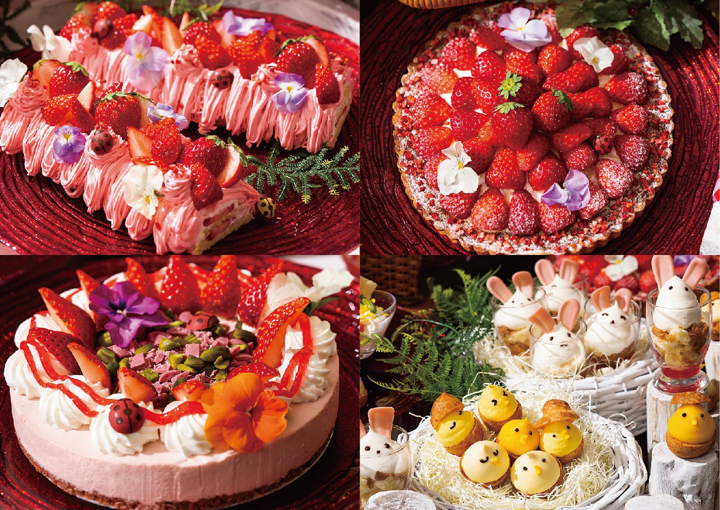 コロナ禍において、イチゴ狩りなど春のレジャーに出かけることが難しい昨今、ホテルのデザートで春気分をお楽しみいただけるように旬のイチゴをたっぷり使用したデザートやイースターにあわせてヒヨコとウサギをモチーフにした癒し系デザートが春のピクニック気分を盛り上げます。