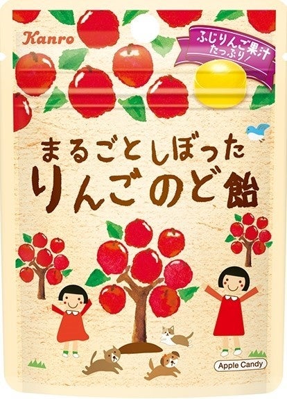 「まるごとしぼったのど飴」シリーズは、季節の果物をまるごとしぼった果汁を使ったメントール不使用のおいしいのど飴です。のどにやさしいハーブエキス入りで「まるしぼり」果汁を使用したジューシーなおいしさが楽しめるため、のど飴においしさとやさしさを求める方におすすめです。また「まるしぼ果樹園」のしっかり者の長女・朝子と、おっとり者の次女・菜々子を描いた絵本のようなほんわかした世界観がお客様にご好評をいただいています。