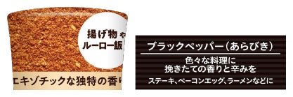 | 小容量・お買い求めやすい価格の洋風スパイスシリーズのリフレッシュ・追加発売により、洋風スパイスのトライアル促進を図ります。 |