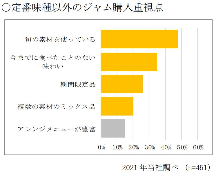 旬の素材を使用した新しさのある期間限定品を求め る傾向があり、「今までに食べたことがない味わい」 への期待感が高い傾向にあります。