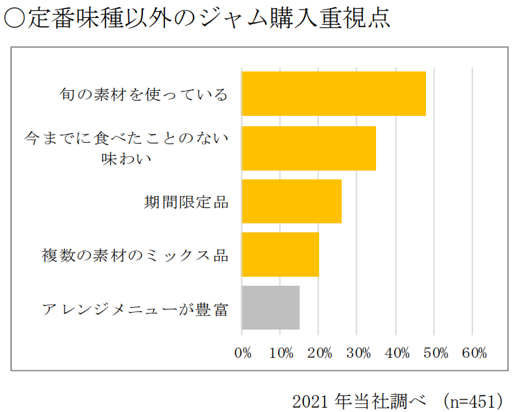 旬の素材を使用した新しさのある期間限定品を求め る傾向があり、「今までに食べたことがない味わい」 への期待感が高い傾向にあります。