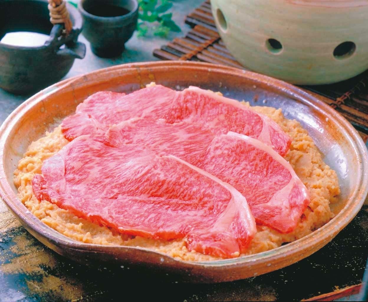 日本最古の和牛ブランドである近江牛のルーツ的存在の味噌漬け。良質な肉質の近江牛を、白粒味噌によって旨みを最大限に引き立てた味噌漬け。江戸元禄年間、将軍家に献上されていたといわれる味噌漬けを、今回は特別に店頭実演にて味噌漬けを仕込み、浸かり具合いを見ながら食べ頃の状態でご提供いたします。
