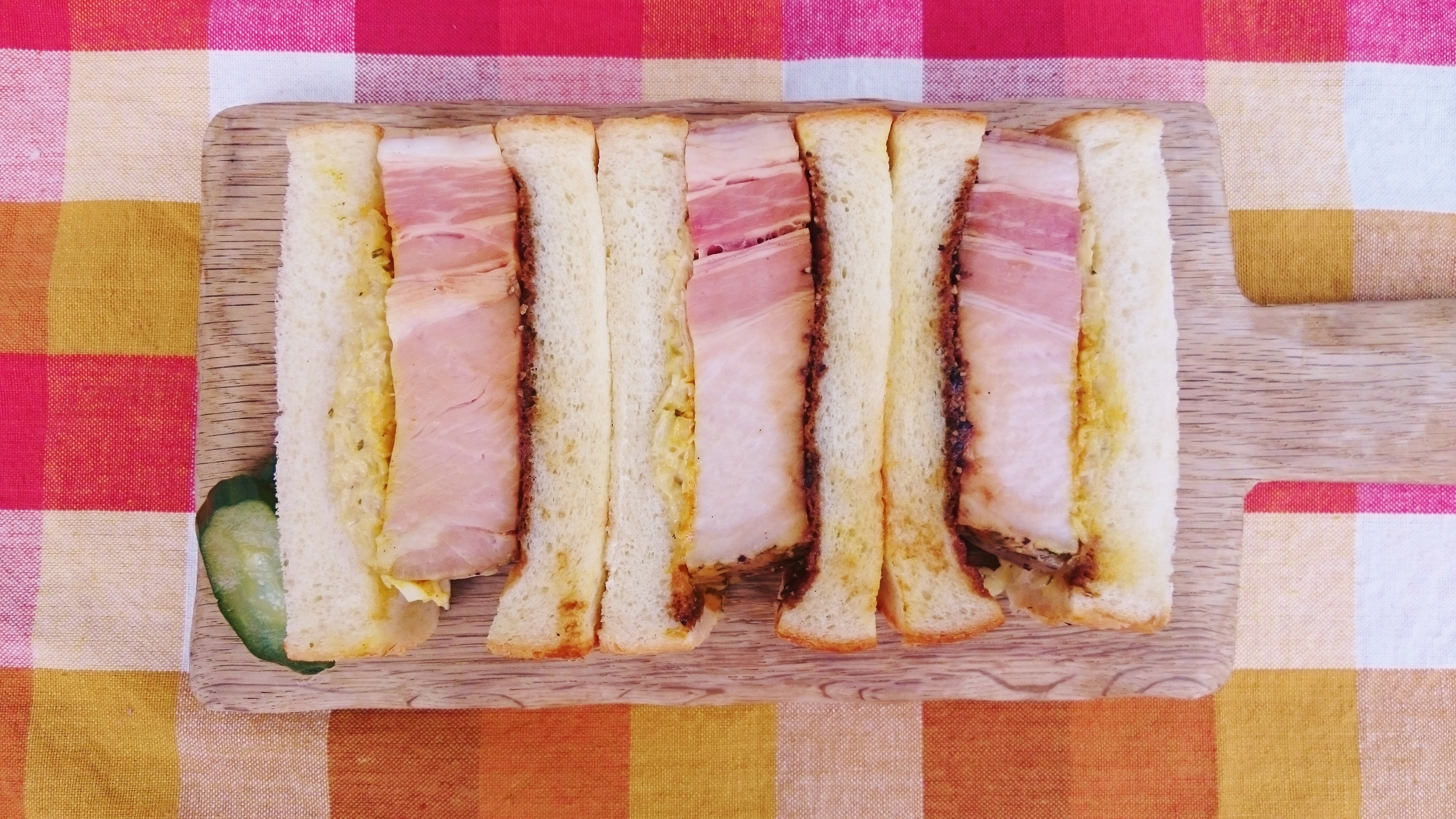 豚ロースを塊でじっくり時間をかけて焼き上げ、ジューシーなお肉を分厚く挟んだ食べ応え抜群の当店人気のサンドです。