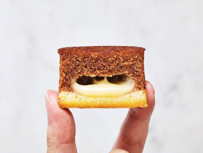 ジャージー牛の故郷であるイギリス・ジャージー島のジャージー牛乳から作られた濃厚なシングルオリジンバターを使用し、食感の異なる2つの生地ガレット・ブルトンヌとフィナンシェにミルクジャムを挟み三層仕立てで焼き上げています。ミルクジャムにはバターを作る過程で生まれる副産物のひとつである脱脂粉乳を使い、バターの仲間たちも無駄にすることなく、美味しく食べられるよう工夫されています。