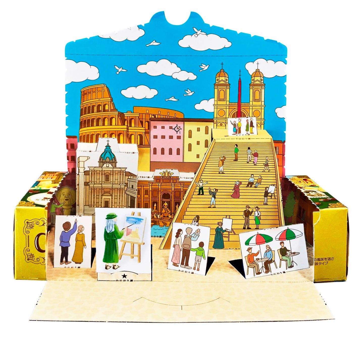 - 食べ終わった後に箱を工作、塗り絵をすれば、世界に1つだけのジオラマが作れます。