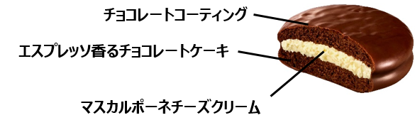 - エスプレッソコーヒーを練りこんだ生地に、マスカルポーネチーズクリームをサンドし、コクのある本格的な味わいを楽しめます。
