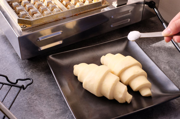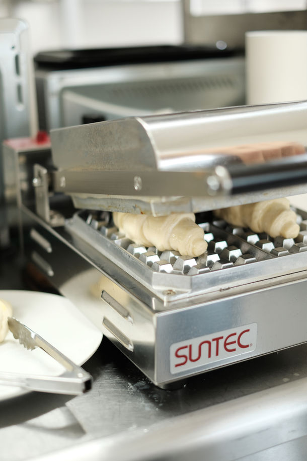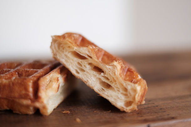 ・見た目はワッフルなのに食べてみるとクロワッサン!表面はザクザク中はふわもち!
